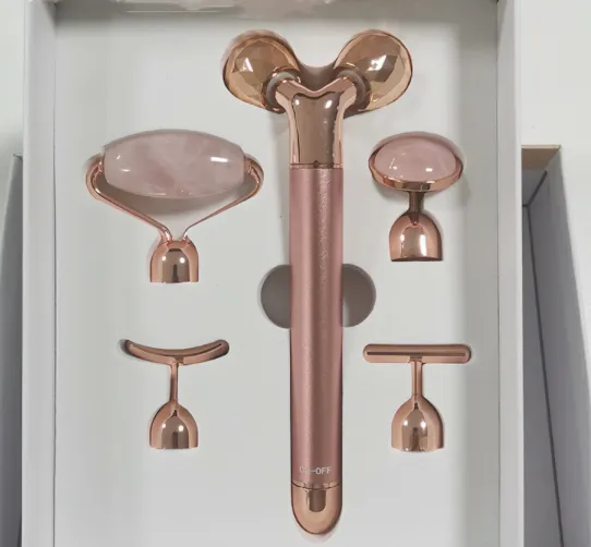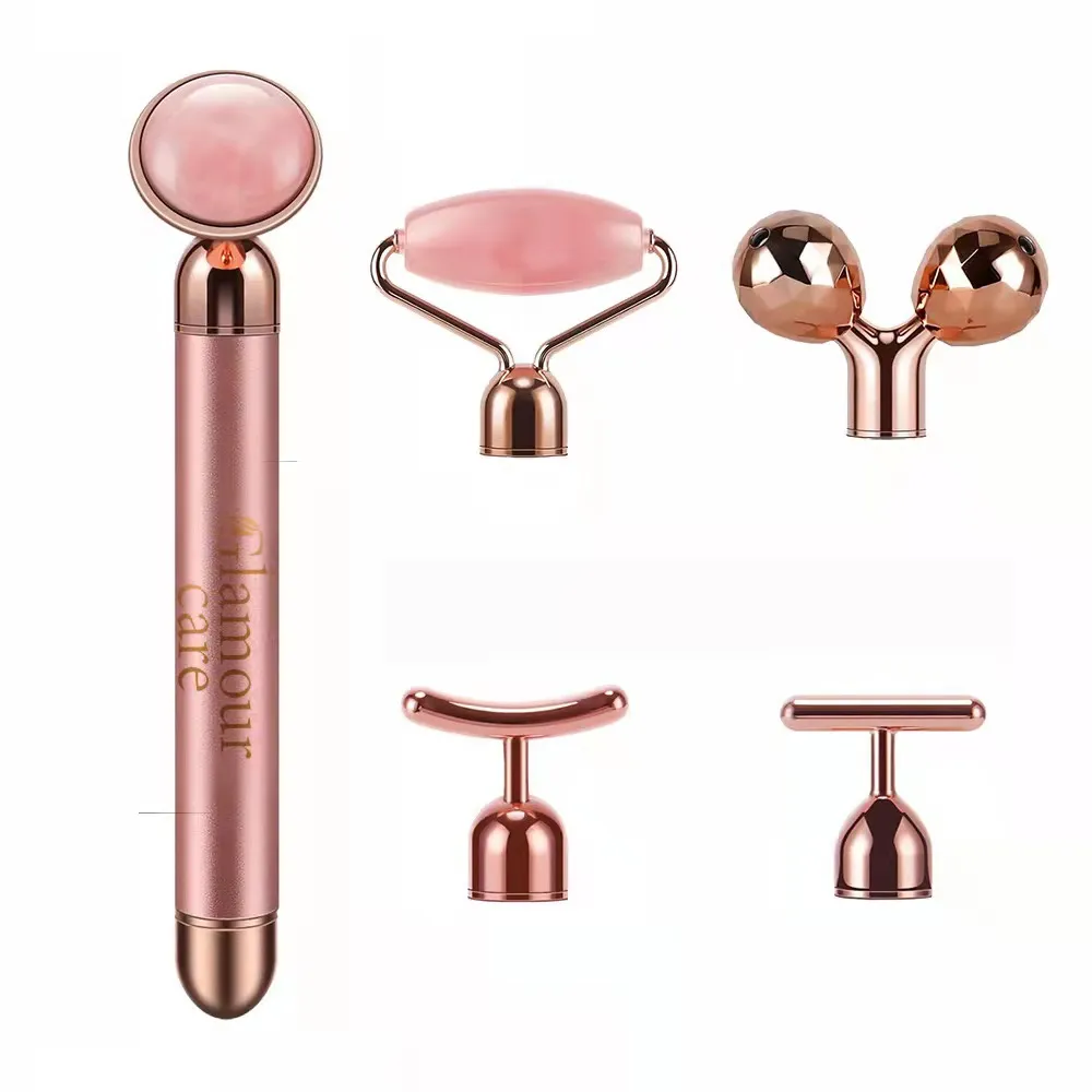 The Five-in-One Jade Beauty Gold Bar is a sophisticated skincare device designed to elevate your beauty regimen. Combining the luxurious properties of 24K gold and rose quartz with advanced vibrating technology, this tool offers a multifaceted approach to facial care. It aims to enhance skin elasticity, promote blood circulation, and improve the absorption of your favorite skincare products. With multiple attachments, it caters to various facial areas, ensuring a comprehensive and personalized skincare experience.