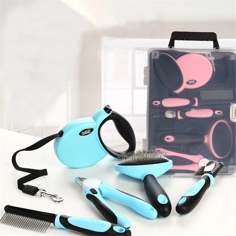 Products: nail clippers, automatic shrink traction rope, single-row long and short needle steel comb, open knot blade comb, pet grooming