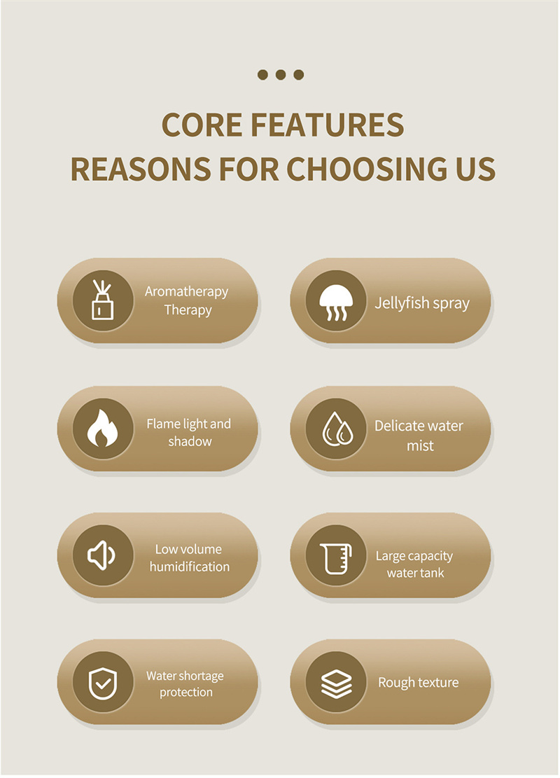 spray mechanism mimicking the elegance of a jellyfish. 🔥 Flame Light and Shadow: Captivating illumination to enrich your