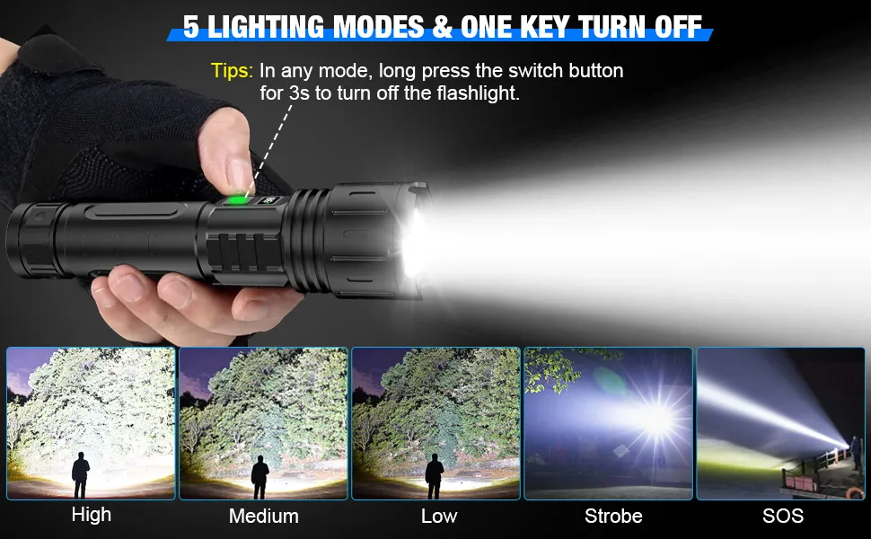 Made from high-quality materials, this flashlight is built to last. The shock-resistant and waterproof features ensure it performs reliably, even in rough conditions or inclement weather.