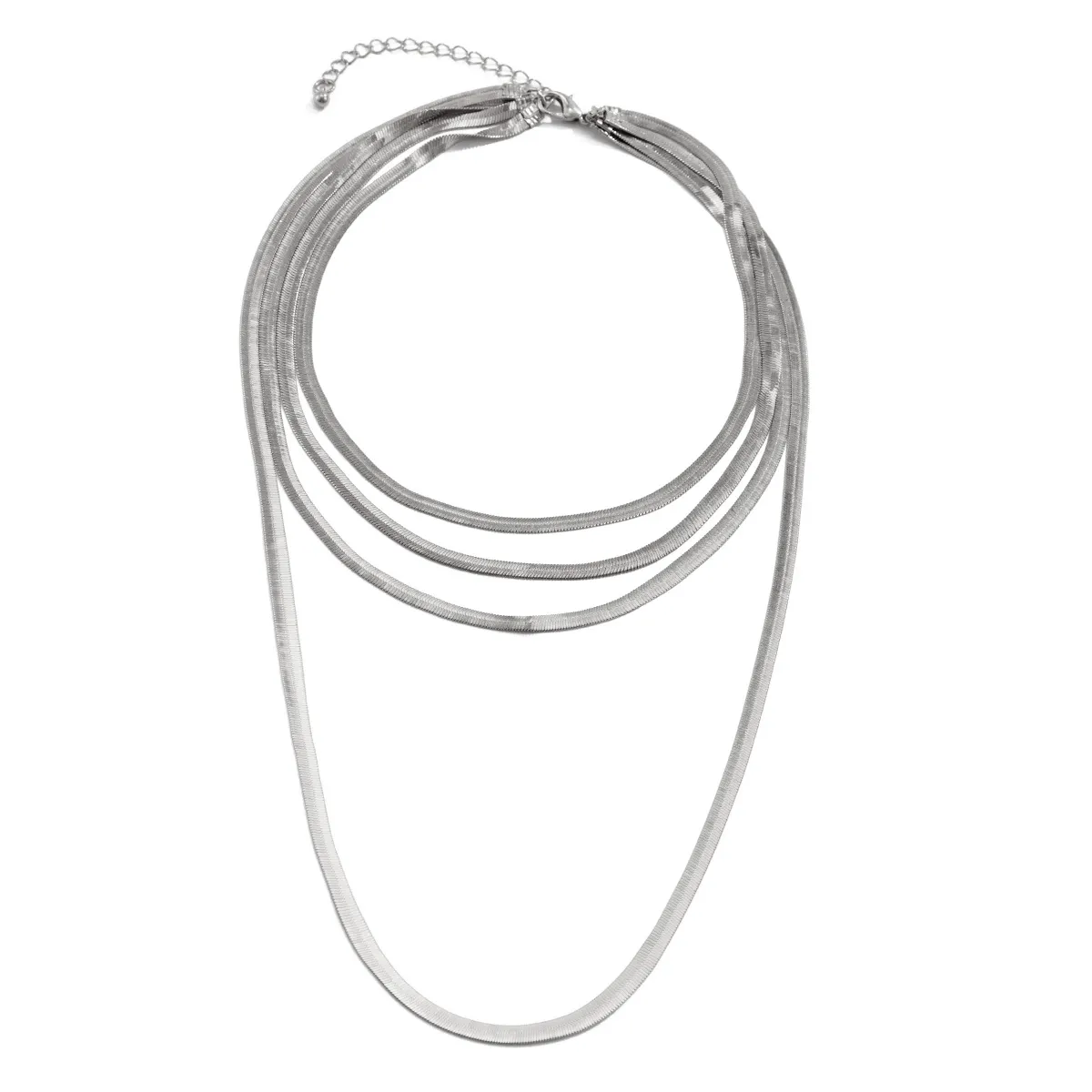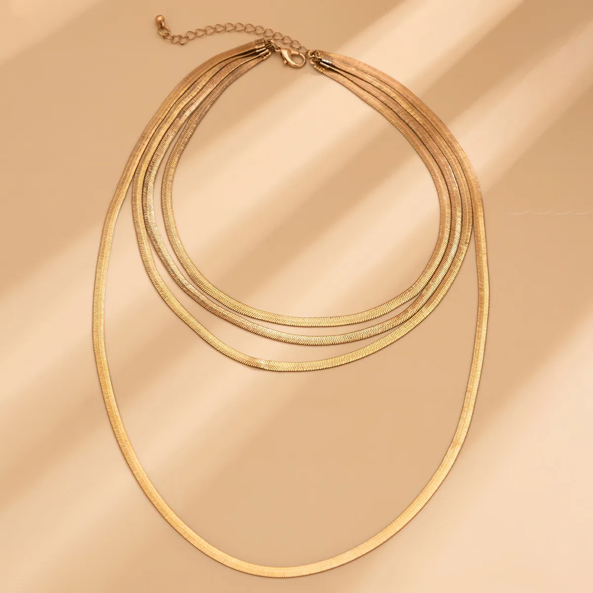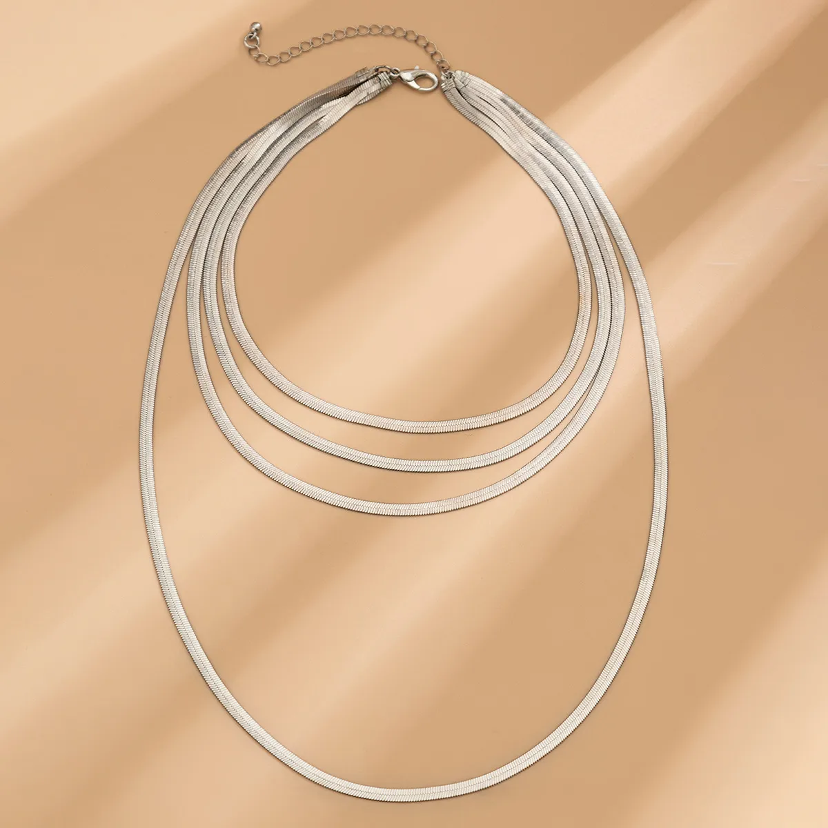 Flat Snake Bone Tassel Multilayer Collarbone Necklace