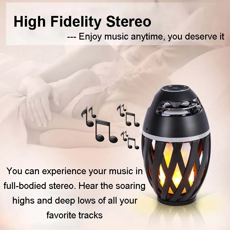 This speaker isn’t just for listening to music. It also doubles as a stunning home decoration. The flame-like LED light serves as both a practical light source and a beautiful piece of decor. Use it to brighten up your living room, bedroom, or study, or as a striking accent piece on your desk or shelf.