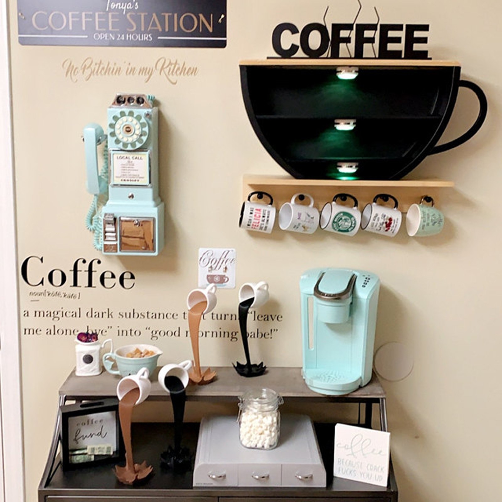 - 【Novel Design Features】 tilted coffee cups, suspended designs, and poured coffee form this characteristic decorative coffee cup sculpture,Let you be surprised by its special shape