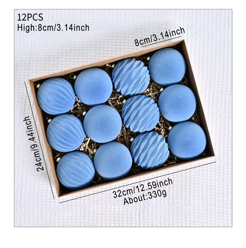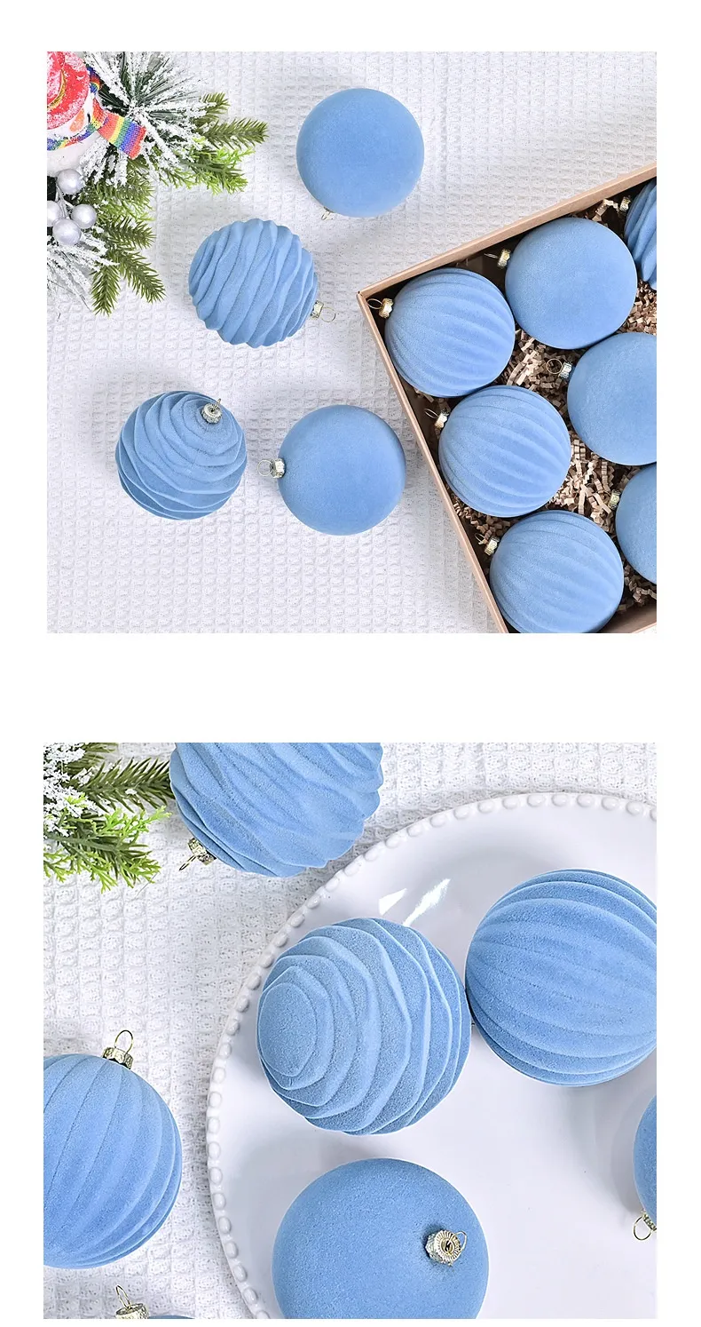 These flocked balls are designed to capture the essence of winter and the magic of the season, offering a refined yet inviting look. The subtle shimmer of the flocking adds dimension to each ball, making them catch the light and sparkle from every angle, bringing your Christmas tree to life with festive charm.