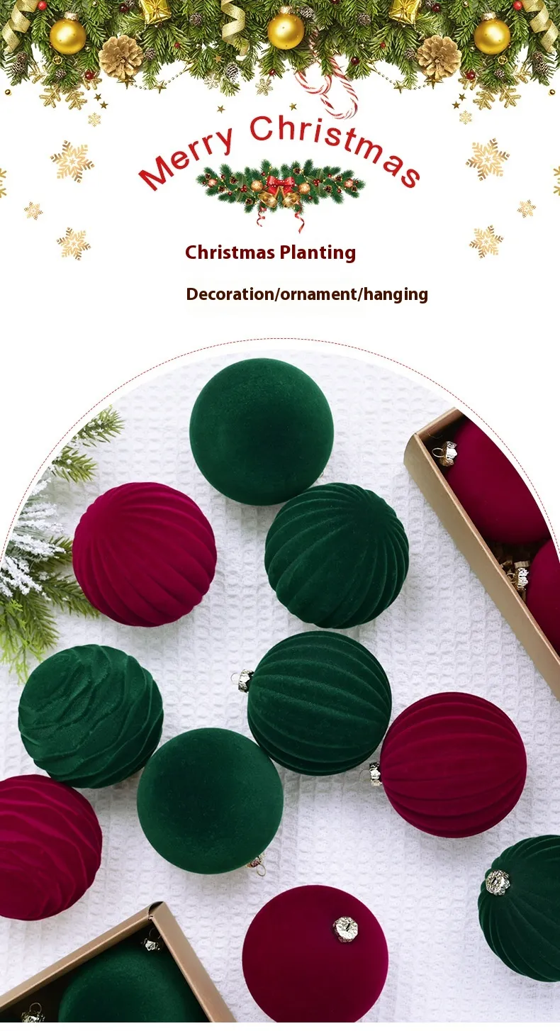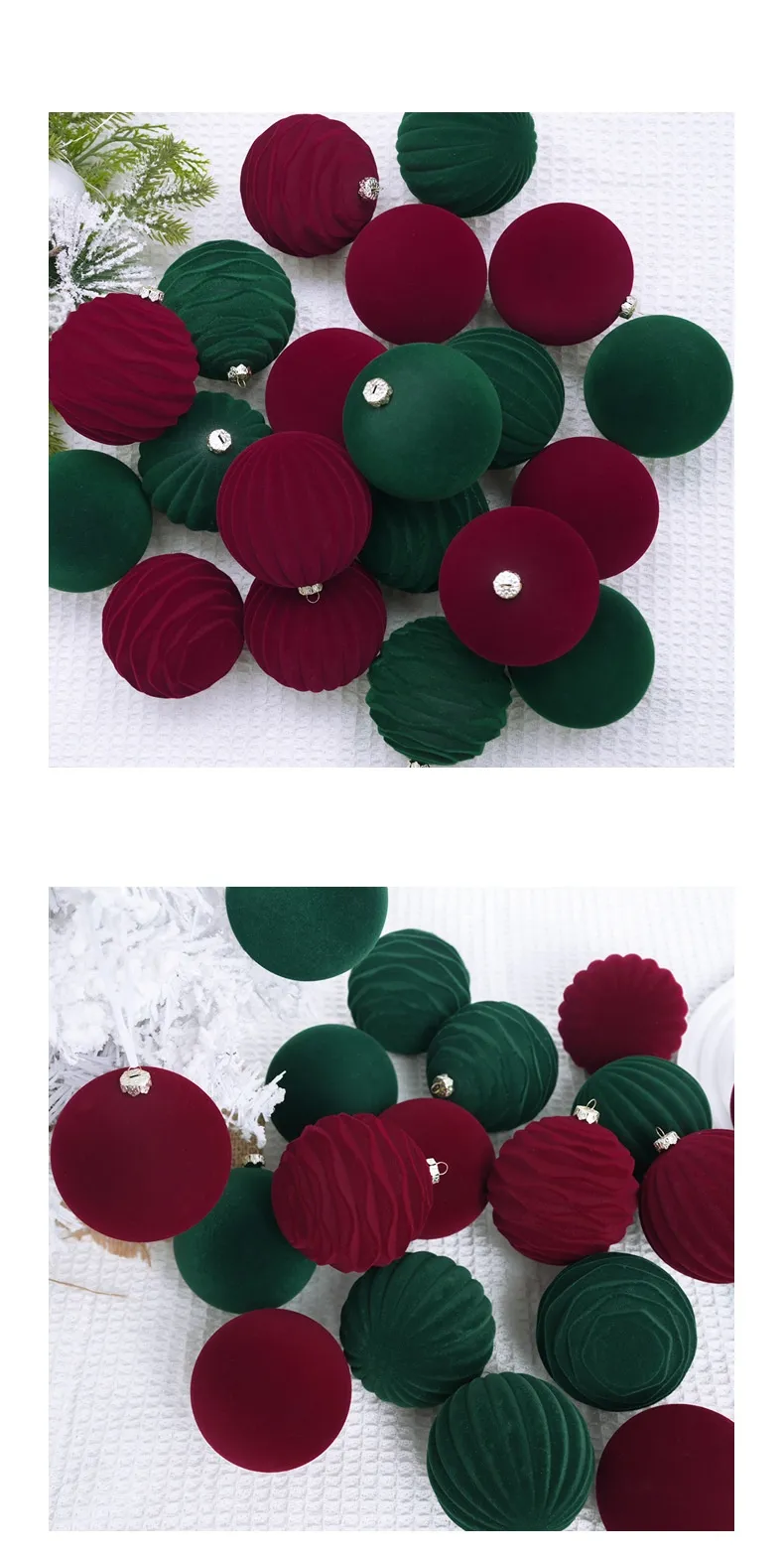 Crafted from durable materials, these Christmas tree pendant flocking balls are built to withstand multiple holiday seasons, ensuring they remain beautiful year after year. The wine red and dark green colors are rich and vibrant, adding depth to your tree without overwhelming the other decorations. Each ball is carefully flocked for a soft, velvety feel that enhances the texture and gives your tree a cozy, snow-kissed appearance.