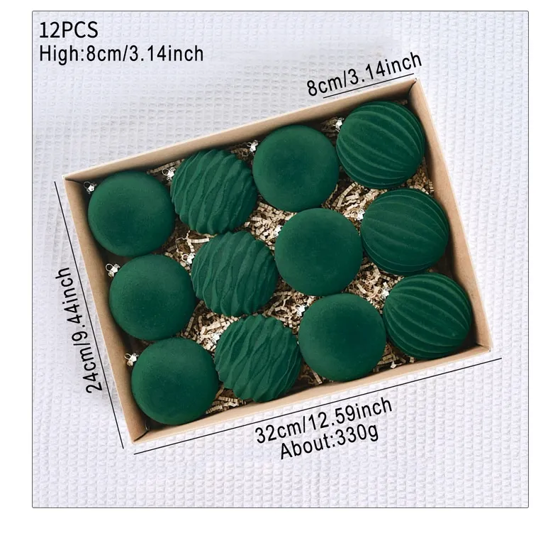 The wine red and dark green colors of these flocking Christmas balls complement a wide range of Christmas tree color schemes and styles, making them versatile enough for any décor. Whether you prefer a rustic, vintage, or traditional Christmas look, these ornaments will add a cozy, festive touch. They also pair beautifully with gold, silver, or white accents, making them ideal for creating a classic yet elegant holiday tree.