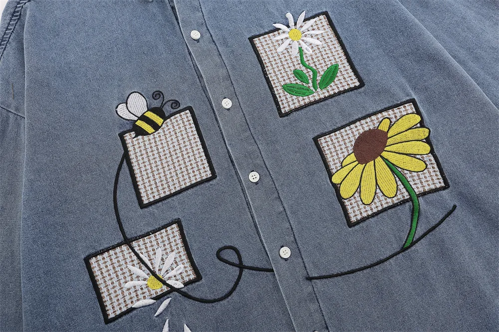 The Floral Embroidery Denim Washed Long Sleeve Shirt Coat is incredibly versatile. Pair it with jeans for a relaxed, everyday look, or wear it over a dress for a more stylish, layered appearance. The loose fit and polo collar make it suitable for various body types, while the floral embroidery ensures you stand out in a crowd.