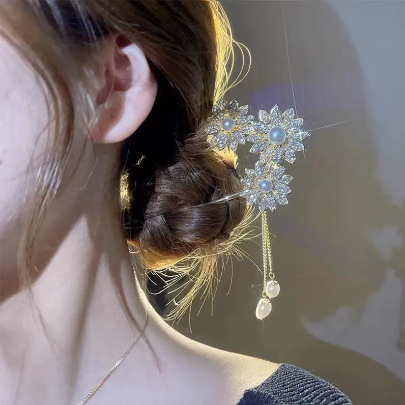 Floral Hairpin Elegant Pearl Pendant