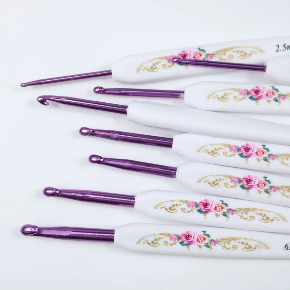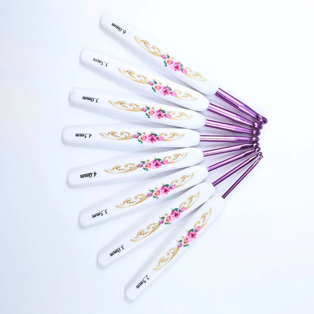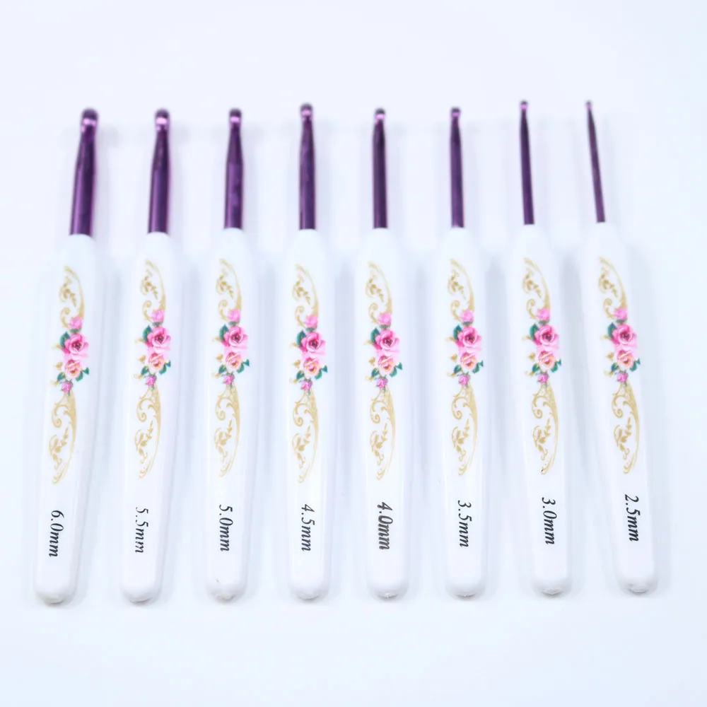 Model Powder crochet printed aluminum crochet hook 8 pcs 1 set, black crochet printed aluminum crochet hook 8 pcs 1 set