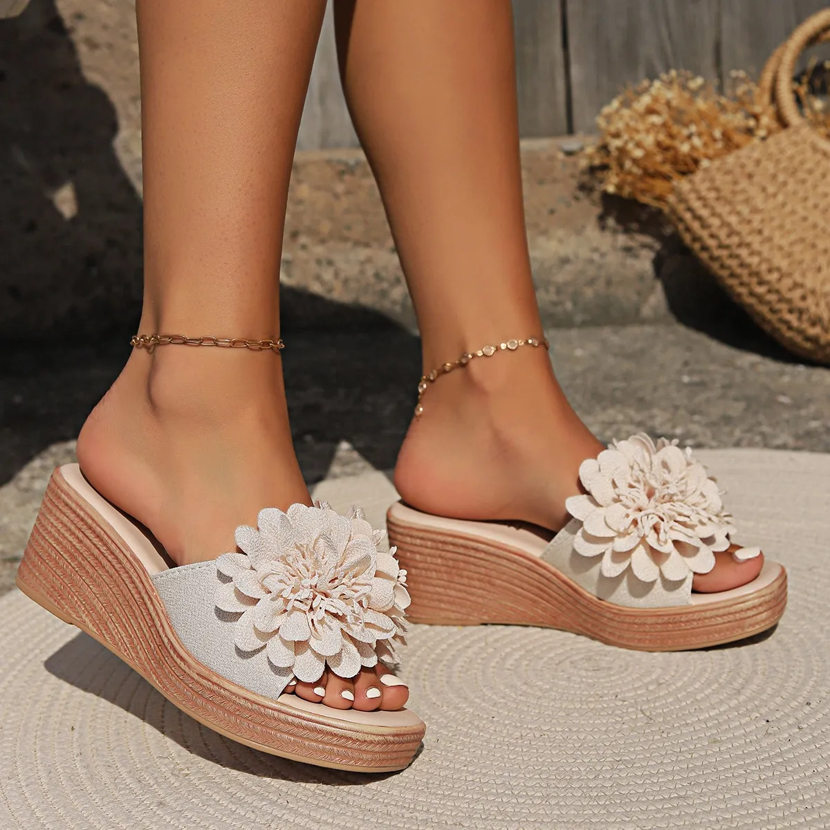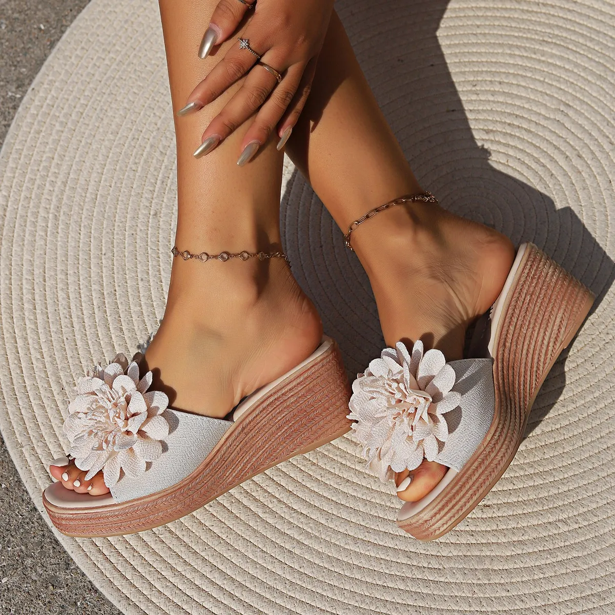 Women’s Flower Design Wedge Sandals – Stylish & Comfortable