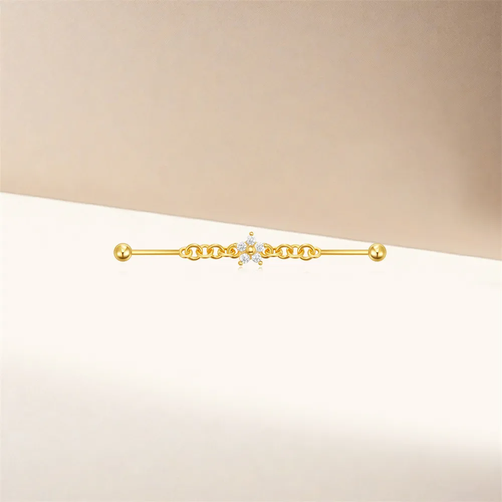 Intricate Flower Design: The floral design adds a unique touch to the classic industrial piercing, making it a standout