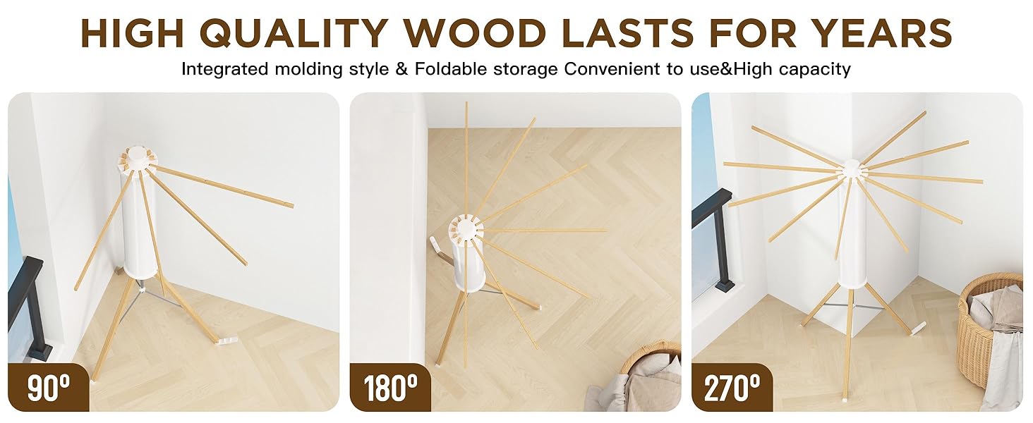 - 【Quality Assurance】Our tripod drying rack have strict production process and quality standards, customer satisfaction is our primary goal. If you have any problem when you receive the product, you can contact us at any time. With this high quality wooden drying rack, you can enjoy a fast and convenient drying experience