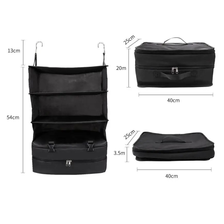 Portable Luggage System Hanging Travel Shelves 3 Layer Storage Bag Organizer