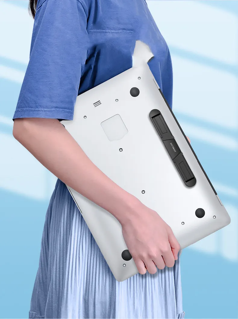 This portable laptop holder is lightweight and foldable, making it easy to carry in your bag or backpack. It’s perfect for travel, allowing you to create an ergonomic workspace anywhere.