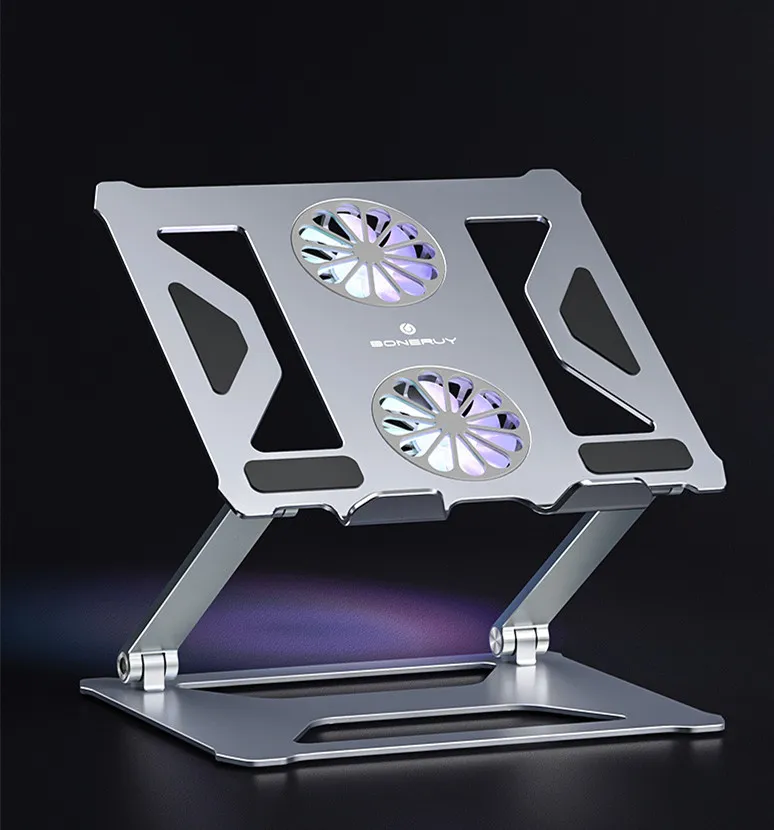 - With its ergonomic design, adjustable height, and cooling fans, this laptop stand creates an ideal working environment. By reducing physical strain and keeping your laptop cool, you’ll experience less fatigue and more focus, allowing you to be more productive throughout the day.