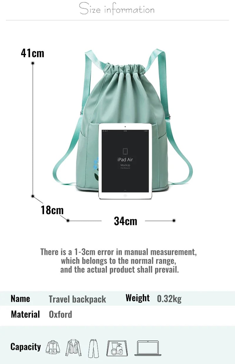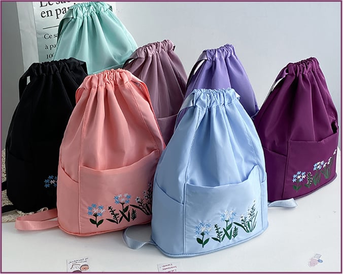 Foldable Waterproof Drawstring Large Capacity Embroidered Backpack