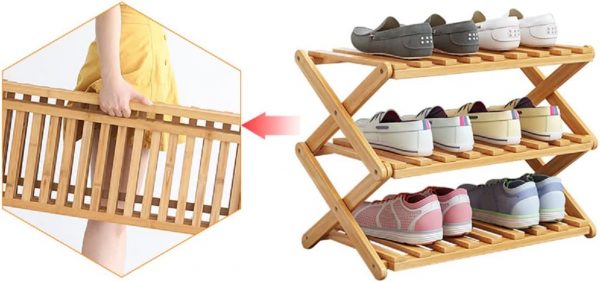 - The Foldable Wooden Shoe Rack is designed to fold flat when not in use, making it easy to store and transport. Its compact design makes it perfect for small apartments, dorm rooms, or homes with limited space.