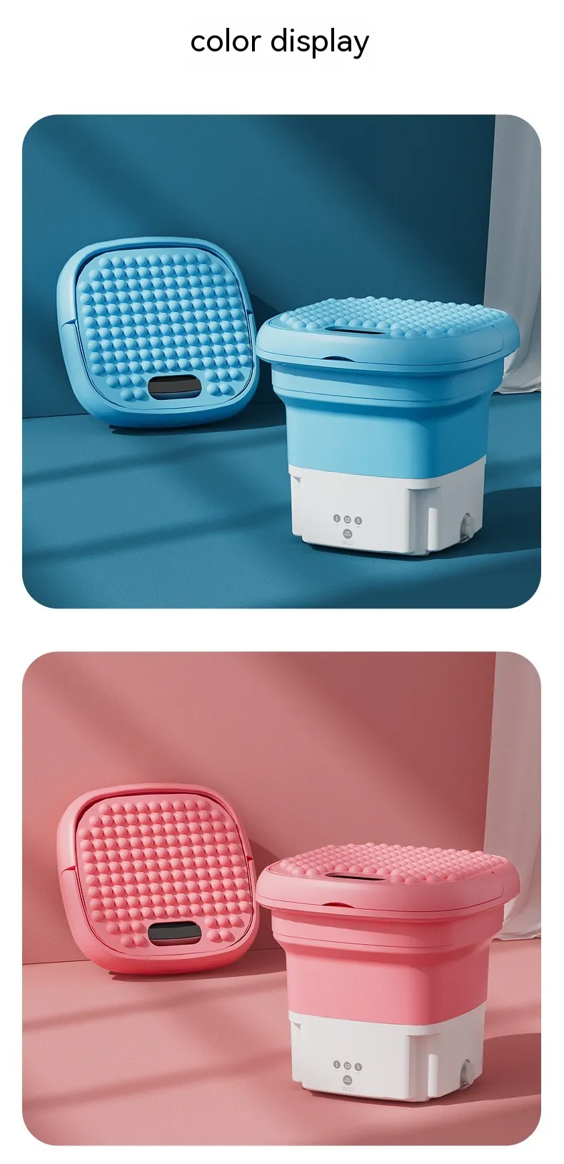 The Folding Dual-Purpose Touch Timing Portable Infant Clothing & Underwear Washing Machine is a compact and efficient solution for cleaning delicate fabrics such as baby clothes, underwear, and socks. Its foldable design, touch controls, and multiple washing modes make it an ideal choice for small households, apartments, dormitories, and travel.