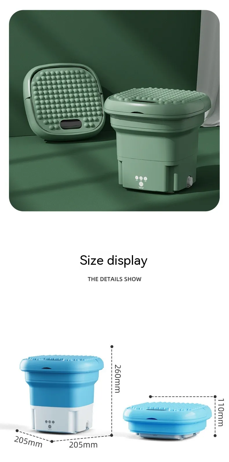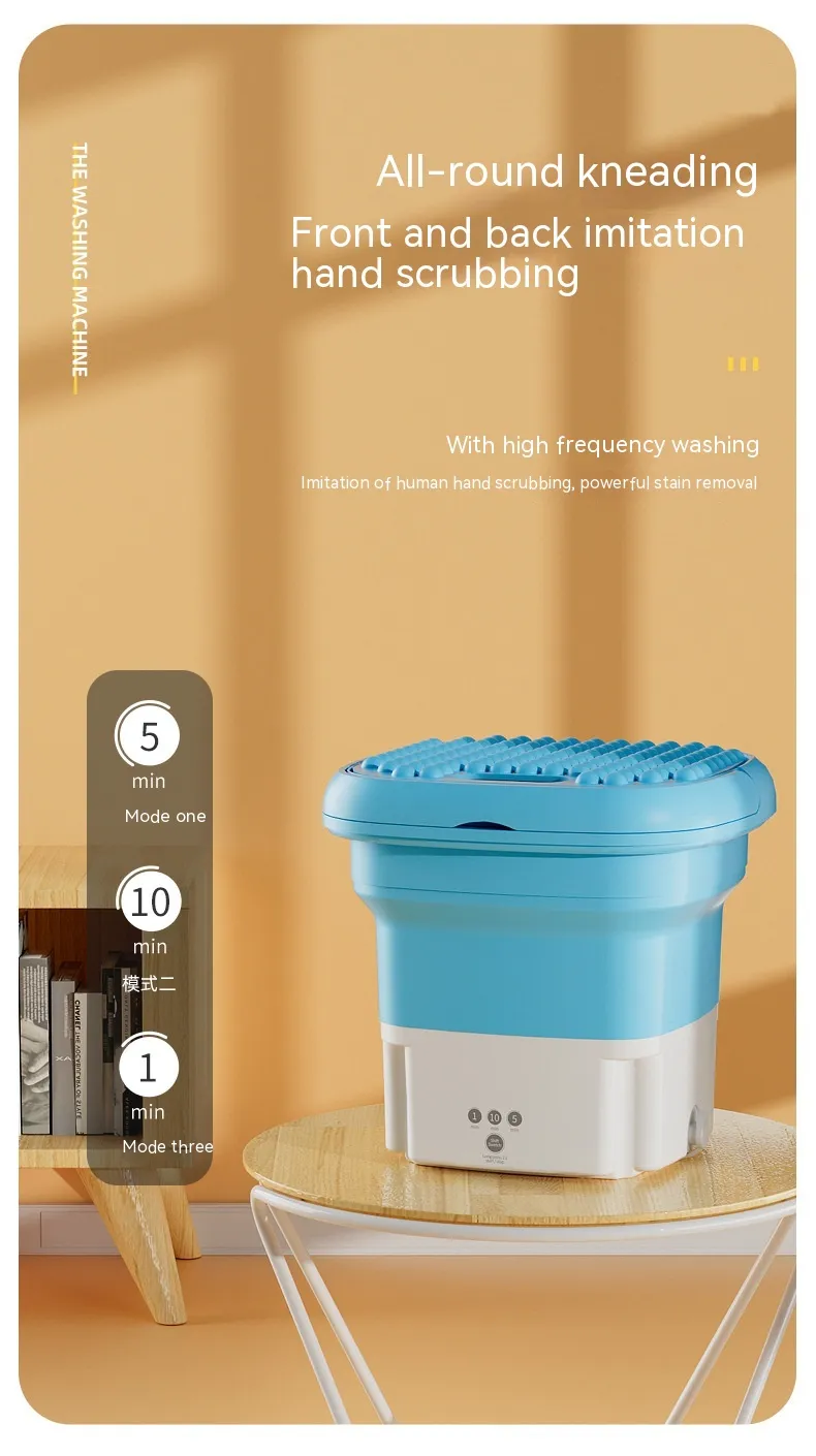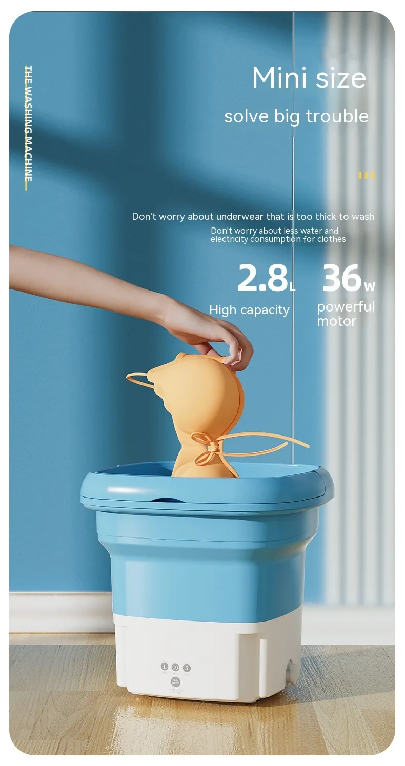 The Folding Dual-Purpose Touch Timing Portable Infant Clothing & Underwear Washing Machine is a compact and efficient solution for cleaning delicate fabrics such as baby clothes, underwear, and socks. Its foldable design, touch controls, and multiple washing modes make it an ideal choice for small households, apartments, dormitories, and travel.