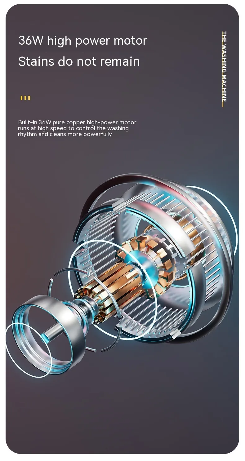 This portable washing machine combines convenience and functionality in a sleek, space-saving design. With a capacity suitable for small loads, it ensures thorough cleaning without the need for a full-sized washing machine. The touch timing feature allows users to set specific wash durations, accommodating various fabric types and soil levels.