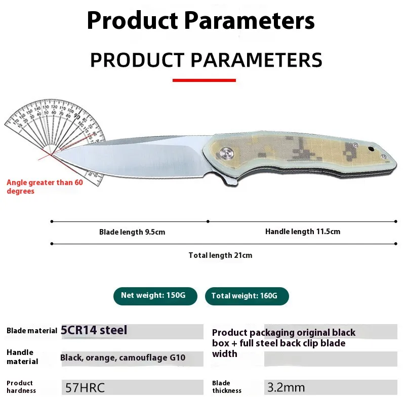 Whether you’re cutting ropes, slicing food, or performing survival tasks, this folding knife serves a wide range of practical applications,