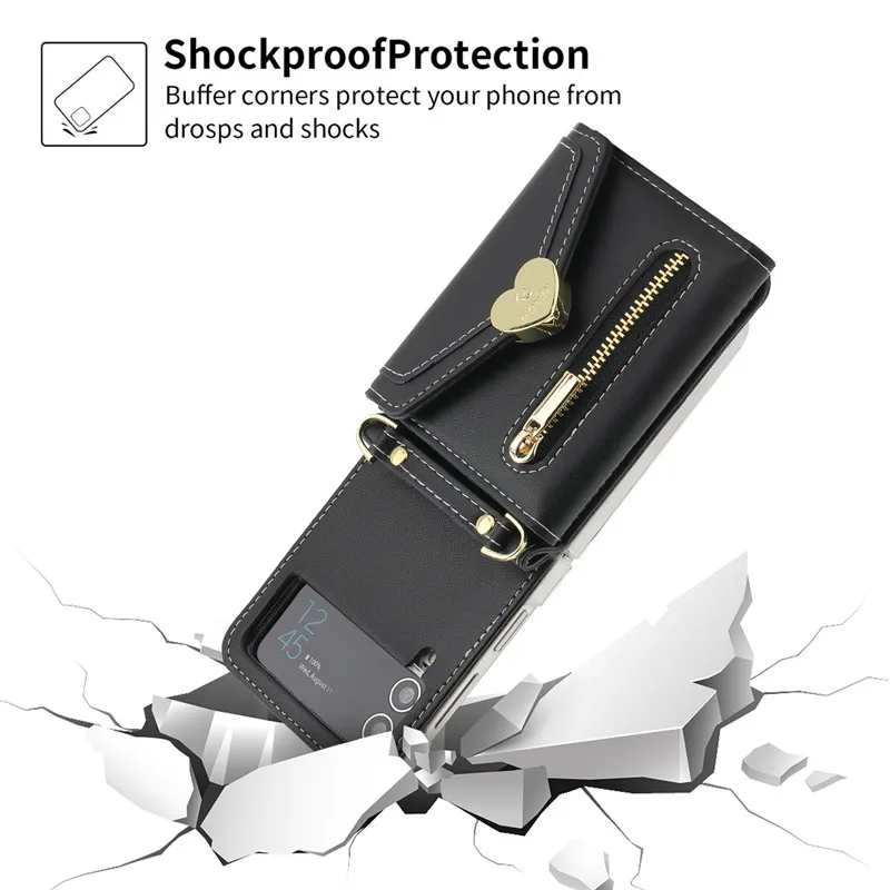 Upgrade your phone protection with the Folding Leather Case featuring a metal heart accent and a large capacity zipper. Designed for New Zealanders who want both fashion and functionality, this case combines elegant leather aesthetics with practical storage solutions. The charming metal heart detail adds a touch of personality, making your phone case a statement accessory as well as a protective cover.
