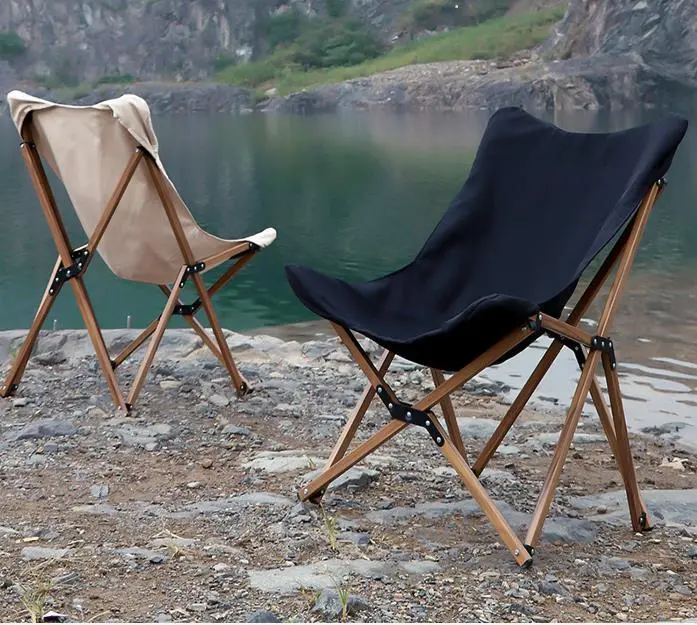 Folding Wooden Grain Aluminum Pipe Camping Chair Portable Leisure