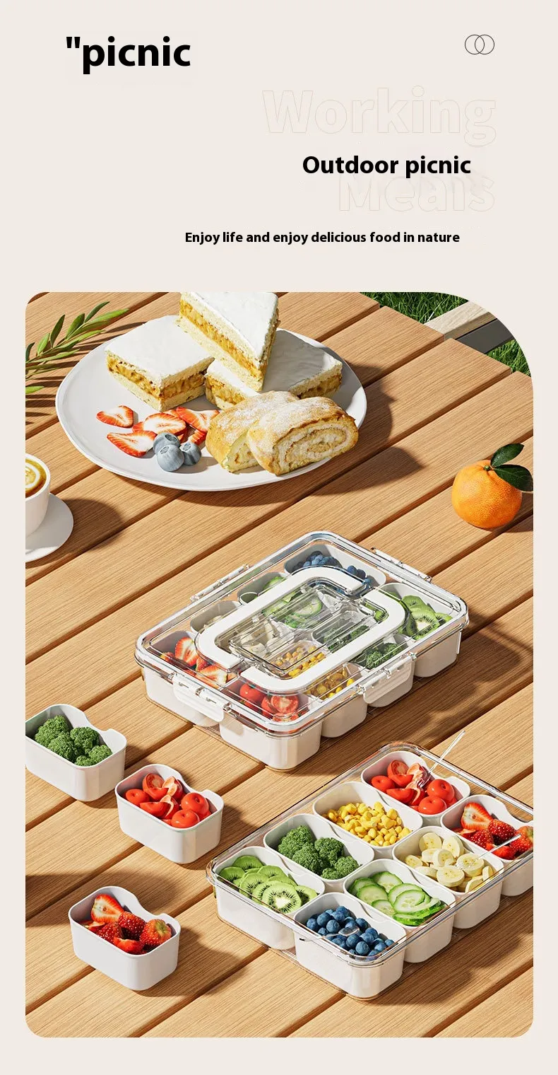 1. Convenient and portable: This snack box container is designed for easy carrying, making it perfect for picnics, outings, and on-the-go snacking.