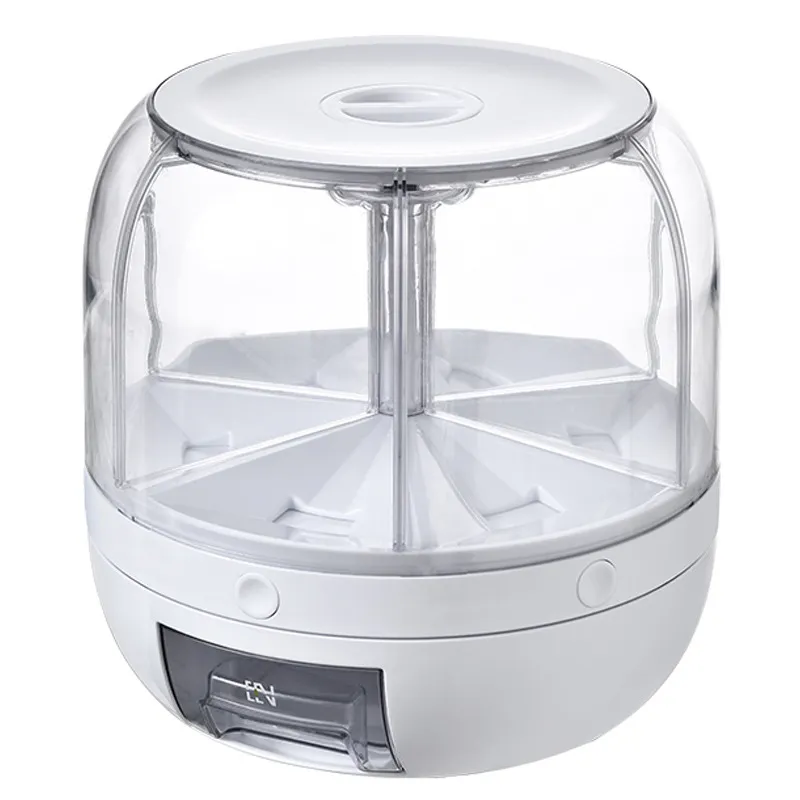 The cabinet can be easily rotated. After pressing the button, a certain amount of stored grain will be released. Even if you are not a