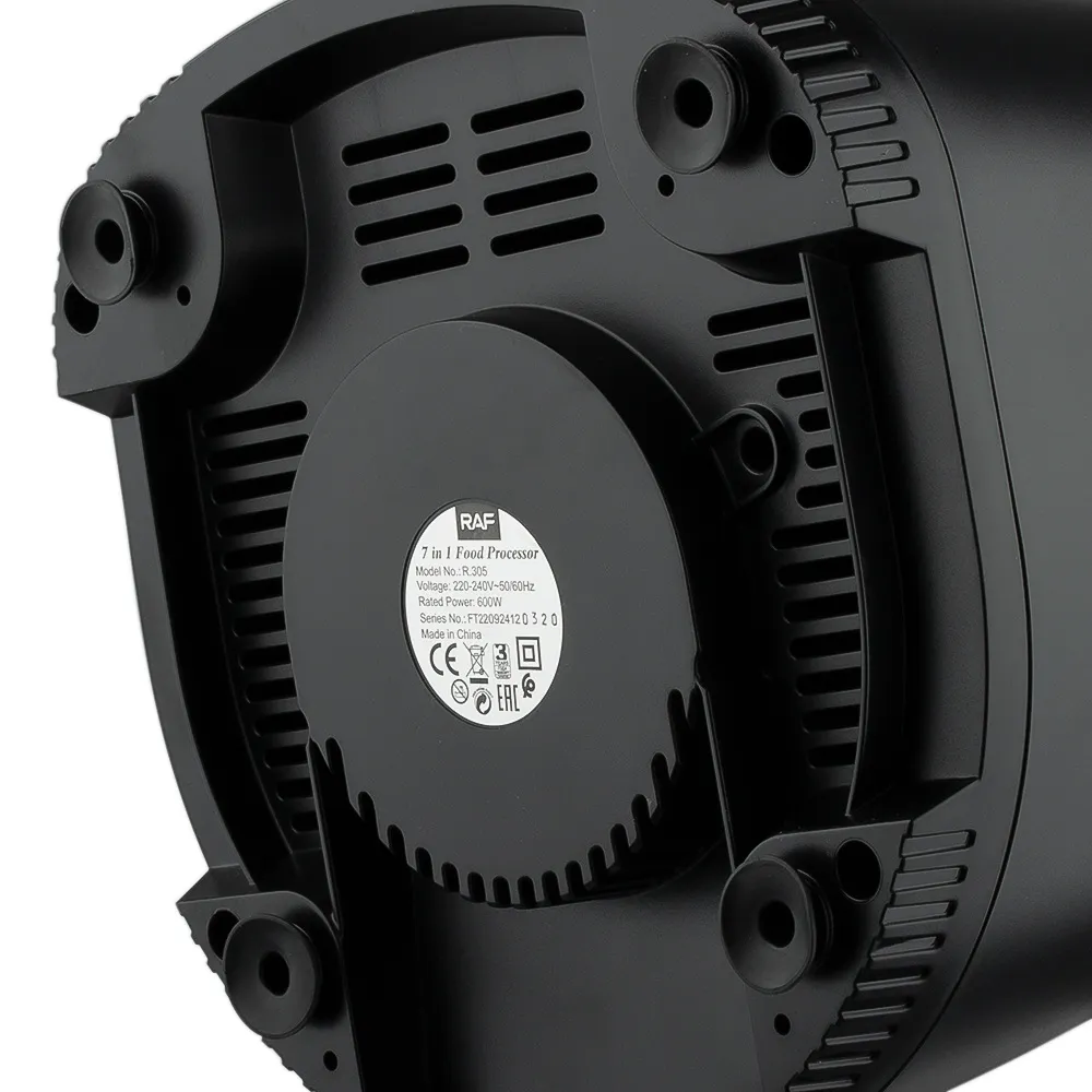 - Non-Slip Feet: Ensures the processor stays in place during operation.