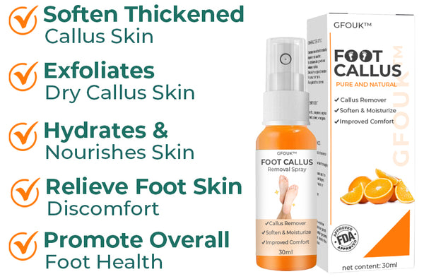 As a Dermatologist, I recommend this GFOUKâ„¢ Foot Callus Removal Spray to patients who have foot callus, pain, or other skin concerns on their feet. Our GFOUKTM Foot Callus Removal Spray, which includes a range of minerals, vitamins, and organic compounds, assists in softening callus and dry skin, making it easier to remove and preventing infections.