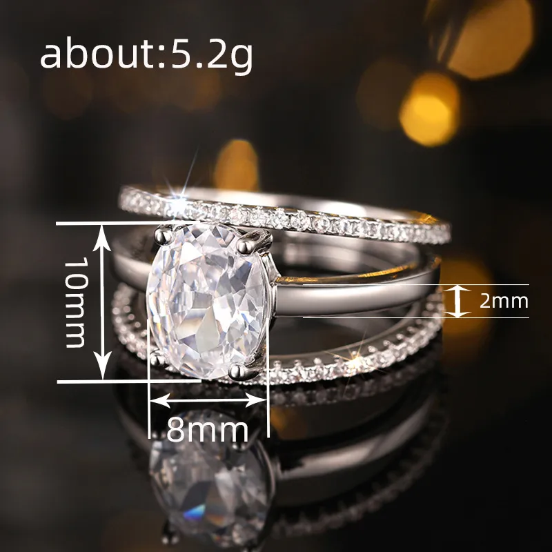 Four-claw Inlaid Ring Three Ring Set Oval Female