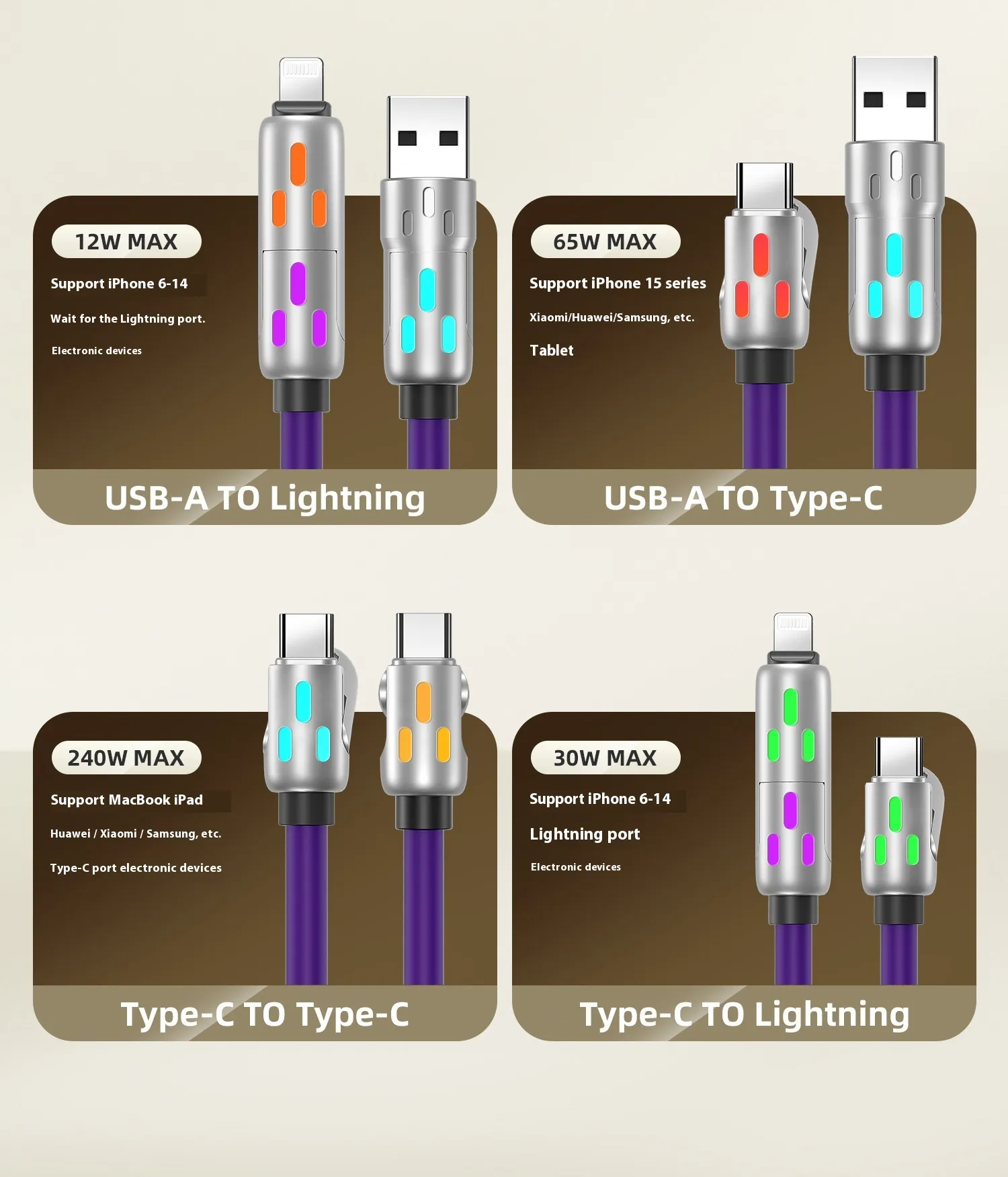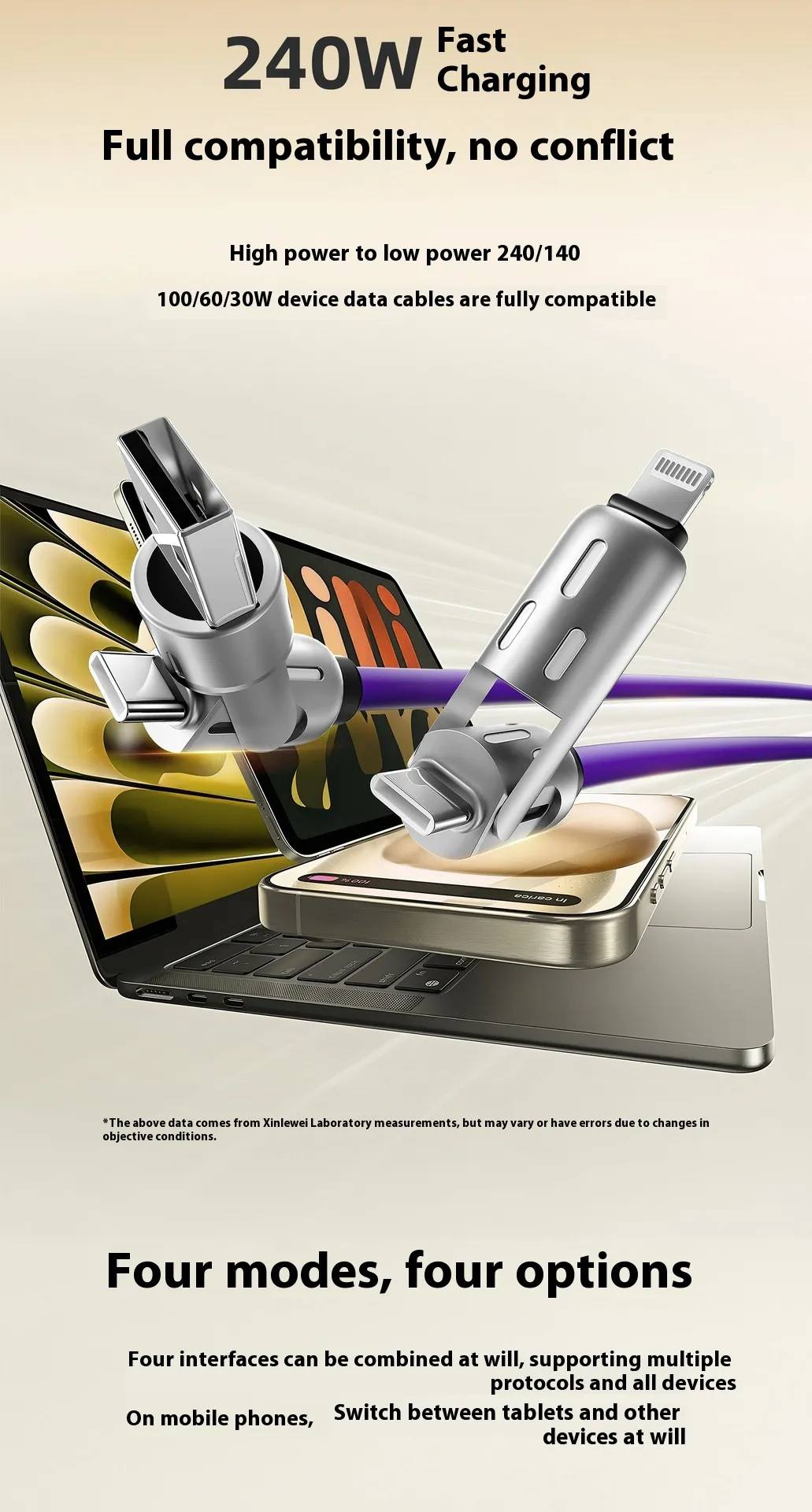 - 4-in-1 multi-connector design (Type-C, Micro USB, Lightning)