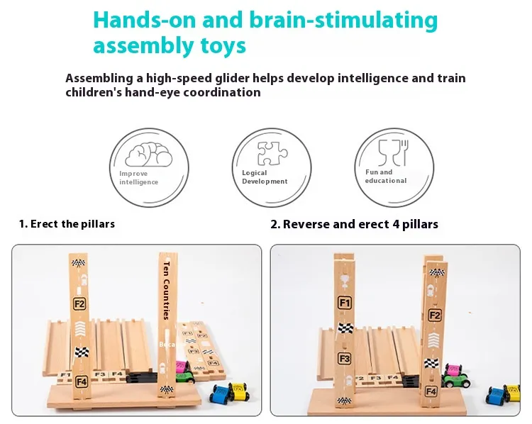The Four Track Gliding Car Children Educational Assembly Track Wooden Toy is more than just a toy; it’s a tool