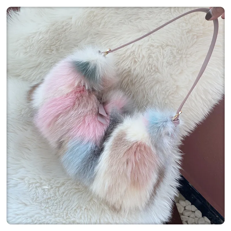 Fox Fur Stitching Women's Handbag Temperament Novel Zipper Design