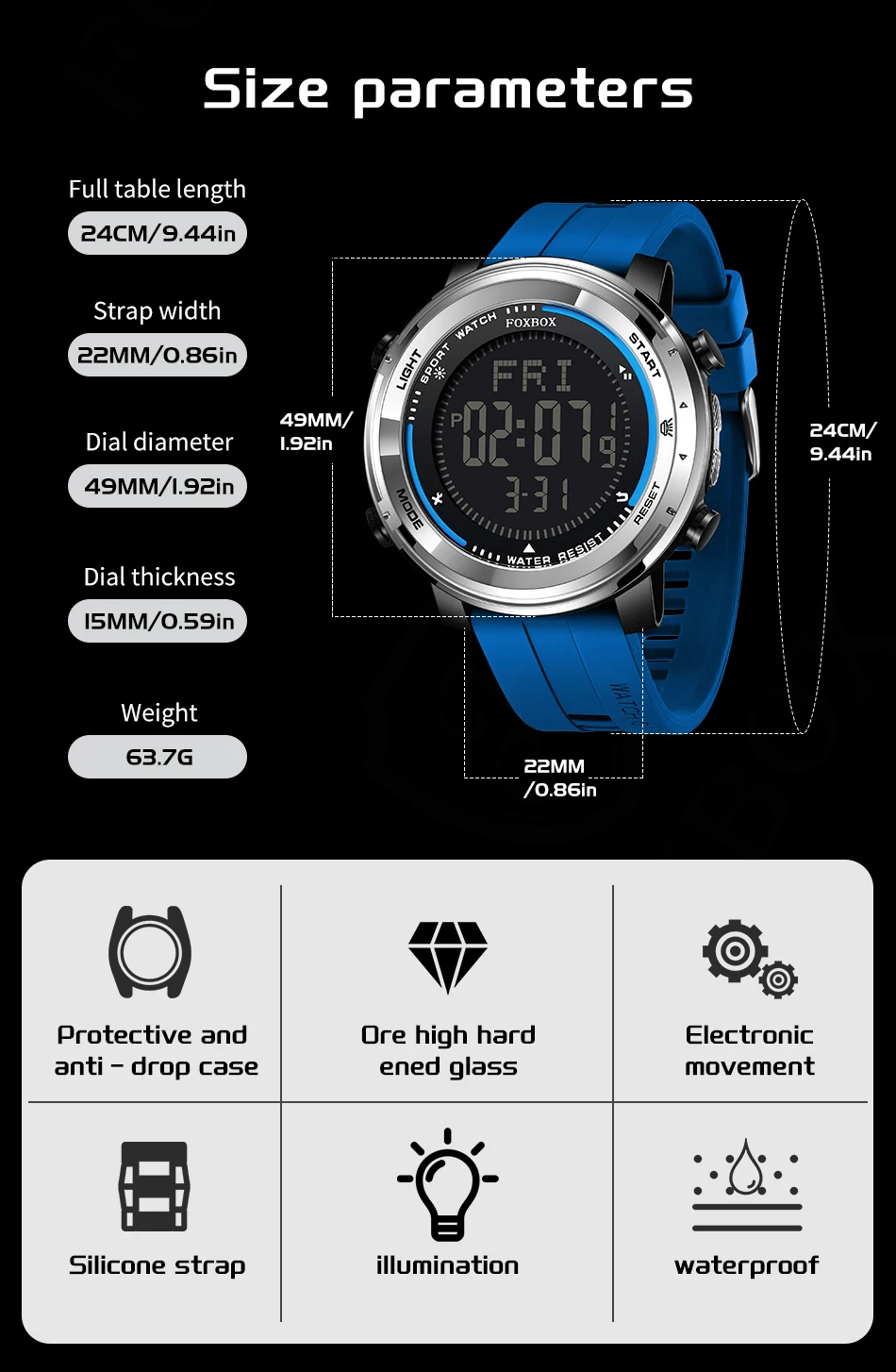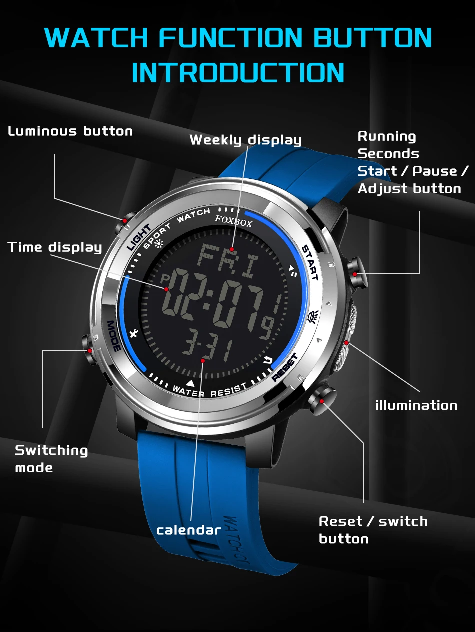 - Features: Luminous hands, digital backlight, and multi-functional screen