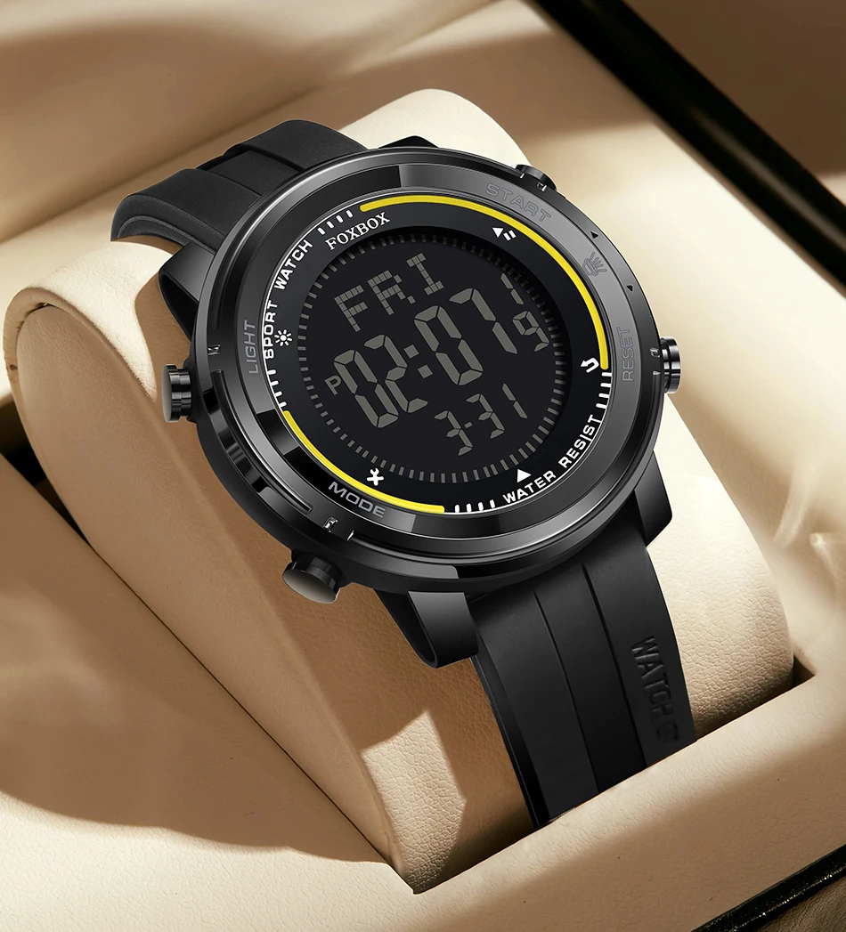 Every detail of the FOXBOX Luxury Watch has been meticulously crafted to ensure it exudes sophistication and resilience. The bold stainless steel case, paired with a robust strap, creates a powerful statement on your wrist. Its minimalist yet striking design is ideal for casual, professional, or athletic settings, showcasing a versatility unmatched in the world of watches.