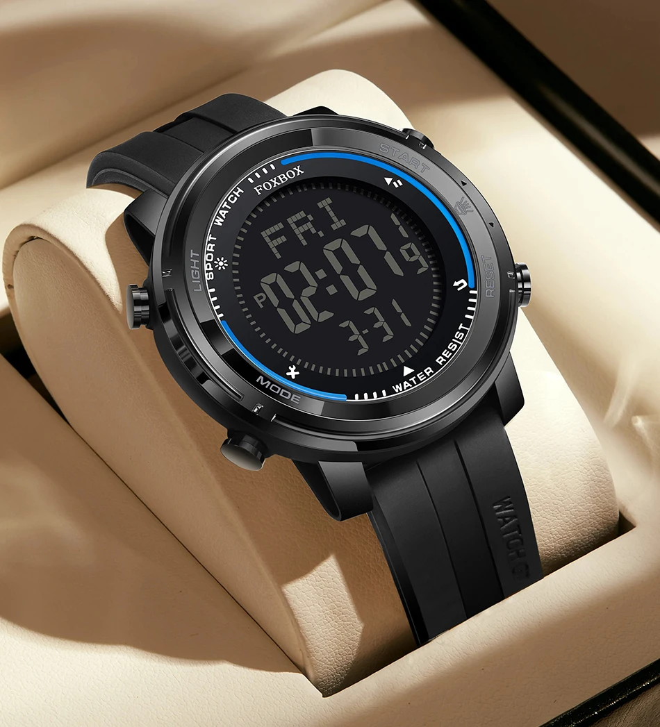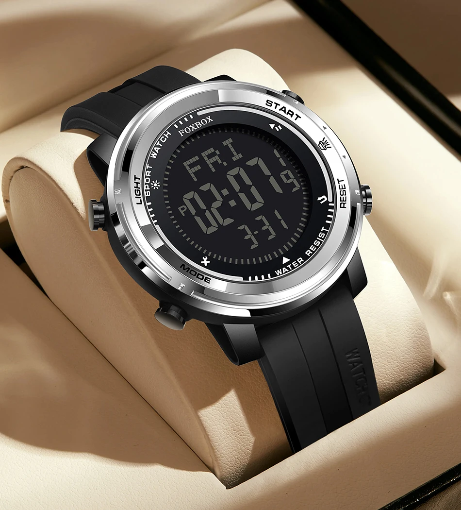 The FOXBOX Luxury Watch offers the best of both worlds with its hybrid digital-analog display. This feature not only adds a contemporary edge to its classic appearance but also enhances usability.
