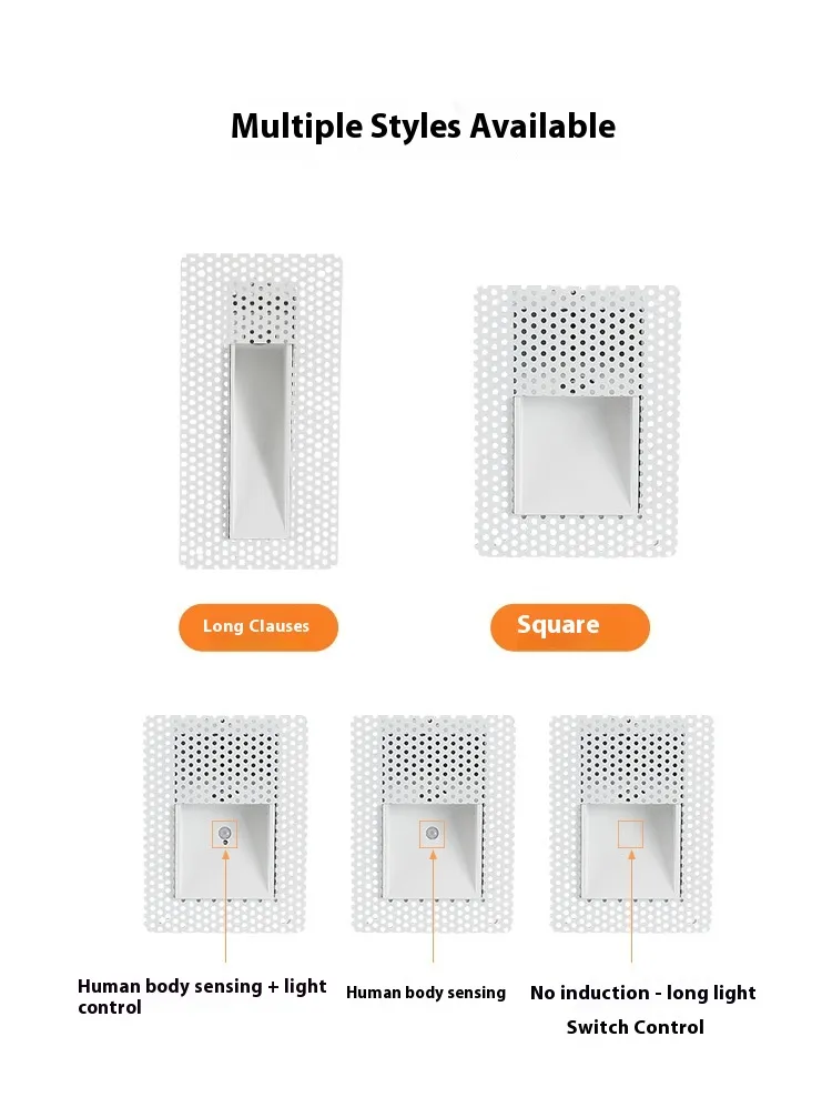light control model-neutral light, square-induction light control model-positive white light, long strip-induction lamp control model-warm