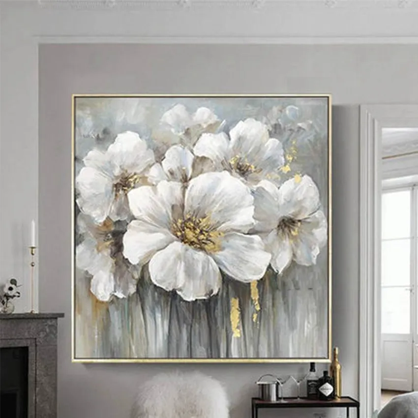 This Frameless White Flower Oil Painting is meticulously hand-painted by skilled artists, ensuring that each piece is unique and of the highest quality. The absence of a frame gives the artwork a modern and clean look, allowing it to blend seamlessly into any room without overwhelming the space. The oil paints used give the piece depth and vibrancy, while the lack of a frame allows for easy integration with your existing decor.