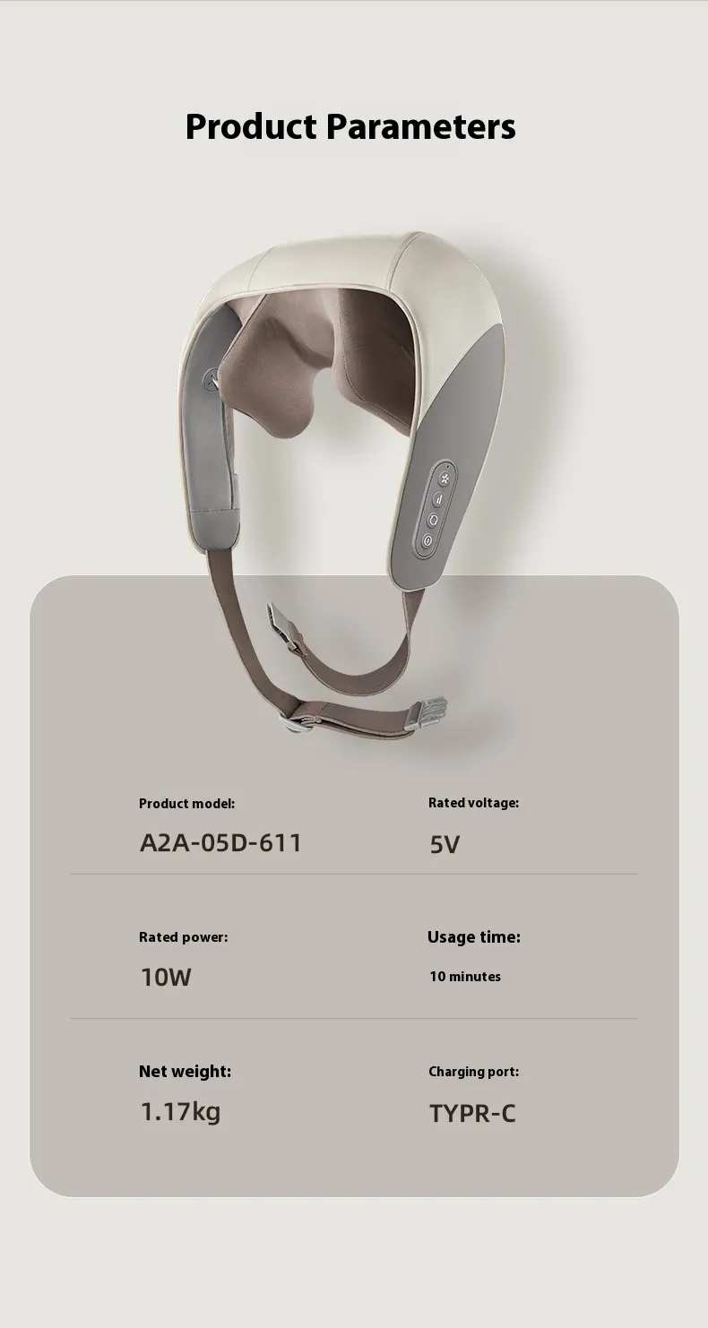 The massager's ergonomic design ensures a comfortable fit around the neck and shoulders, providing effective coverage for targeted areas.​