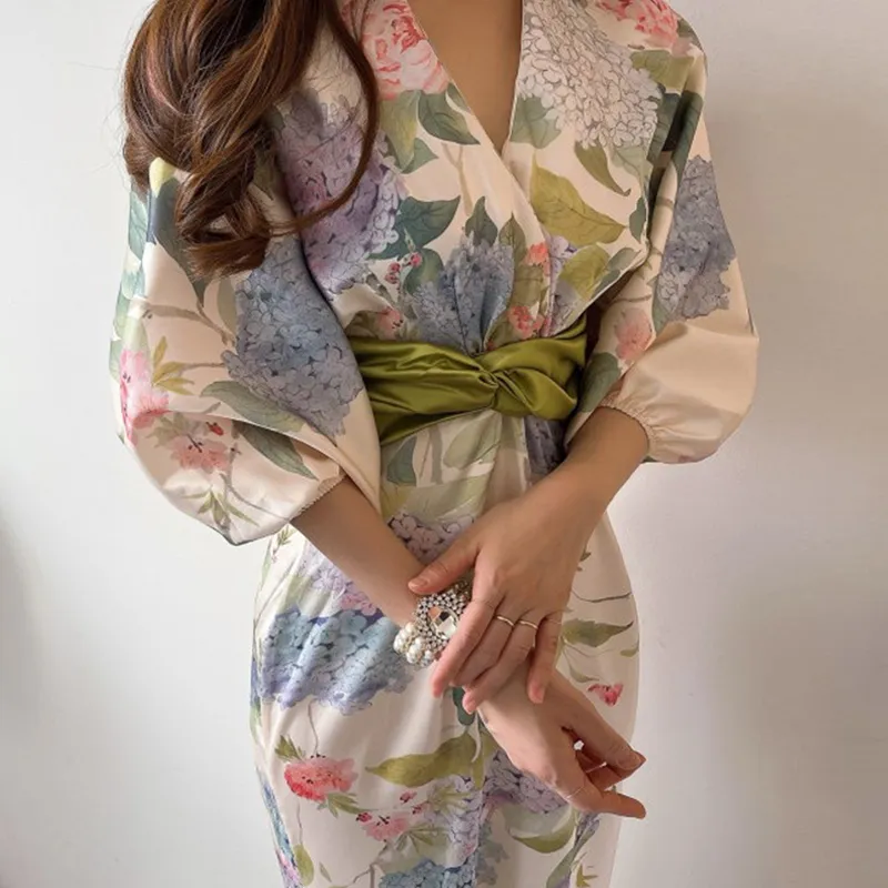 The French Elegant V-neck Printed Kink Dress is versatile enough to dress up or down. Pair it with heels and a statement necklace for a polished, evening look, or go casual with sandals and a sunhat for a relaxed daytime vibe. This dress captures the essence of French fashion, making it a go-to piece for any occasion.