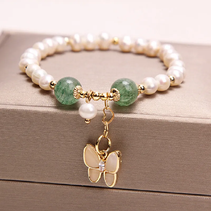 This bracelet is more than just an accessory—it's a celebration of natural beauty and elegant design. The combination of pearls, quartz, and the butterfly charm creates a piece that is both classic and unique, making it a must-have for any jewelry lover. Whether you wear it on its own for a minimalist look or stack it with other bracelets for a more layered effect, it adds a touch of sophistication and femininity to your style.