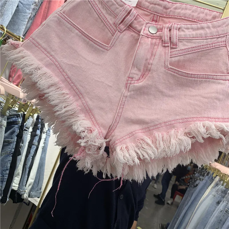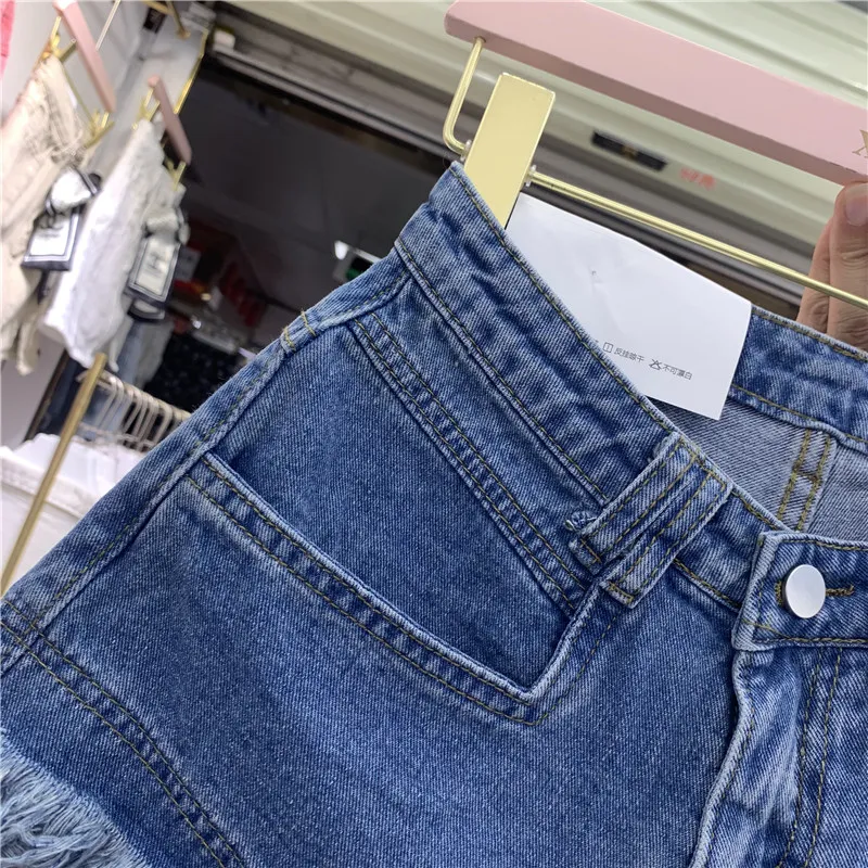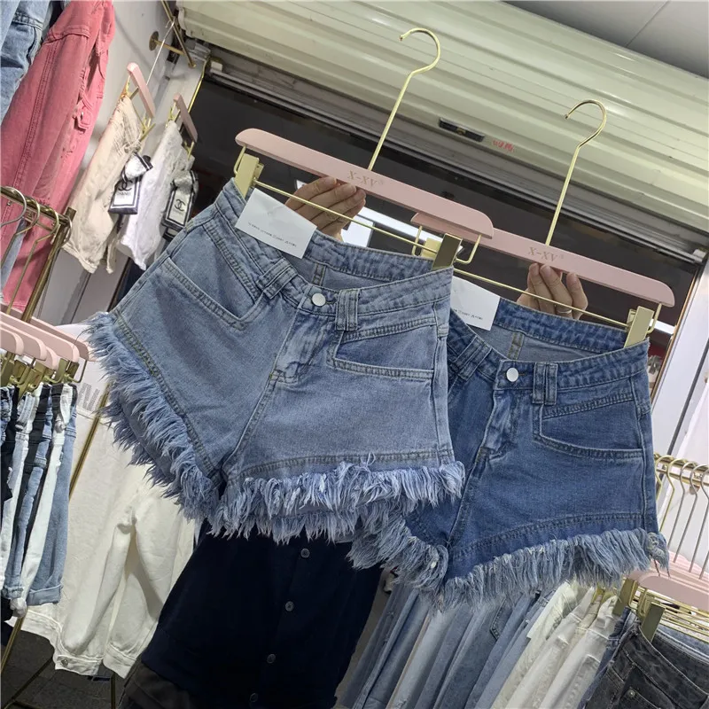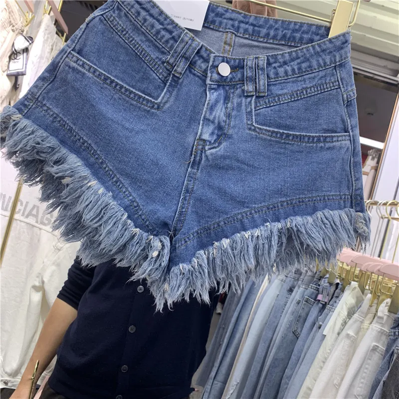 Fringed Frayed Denim Shorts Women Summer Thin High-waisted Wide-leg Pants