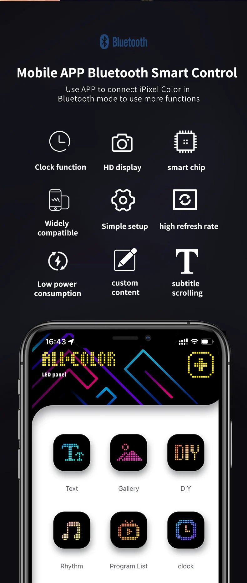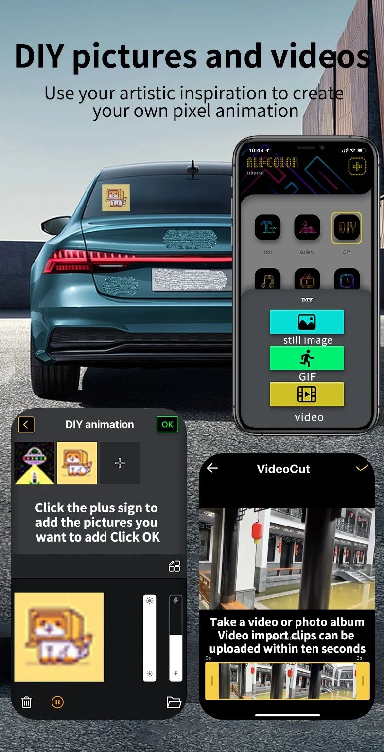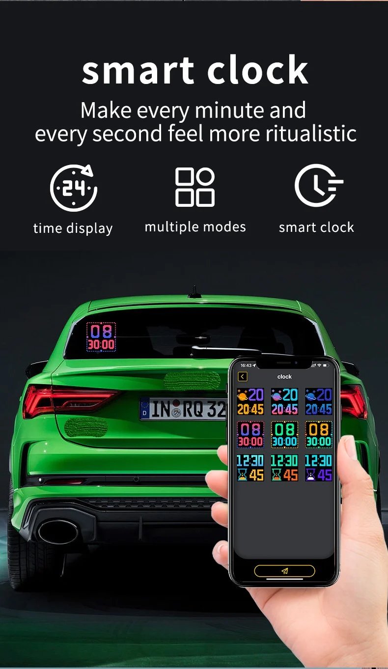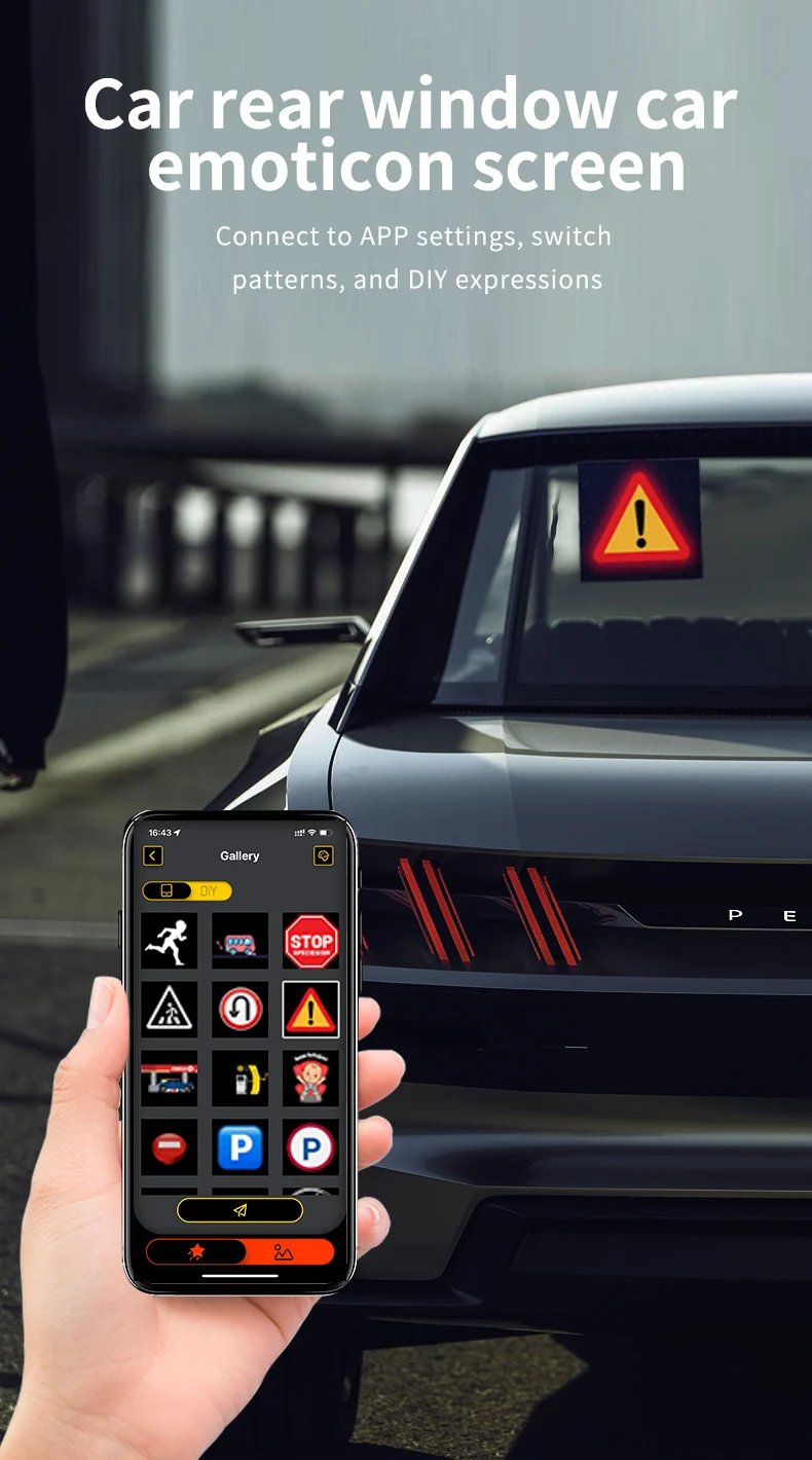 Design your very own personalized LED display with our DIY Bluetooth LED Display Screen. Whether you choose from our built-in animations and pre-set symbols or design your own animated GIFs or images, your display will be truly unique.
