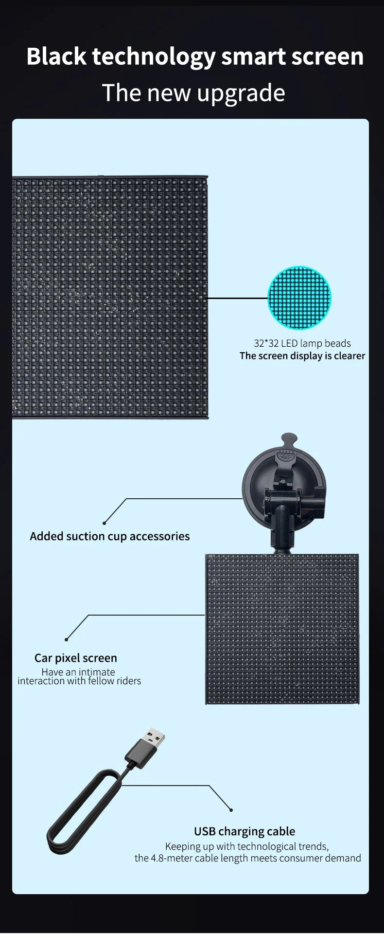 This scrolling LED sign is perfect for advertising, with clear patterns and versatile display methods. Thanks to the upgraded voltage technology of 5V USB, the LED signs emit very low heat and are safe to use, making them ideal for electric cars. Display your personalized sign while driving around town.