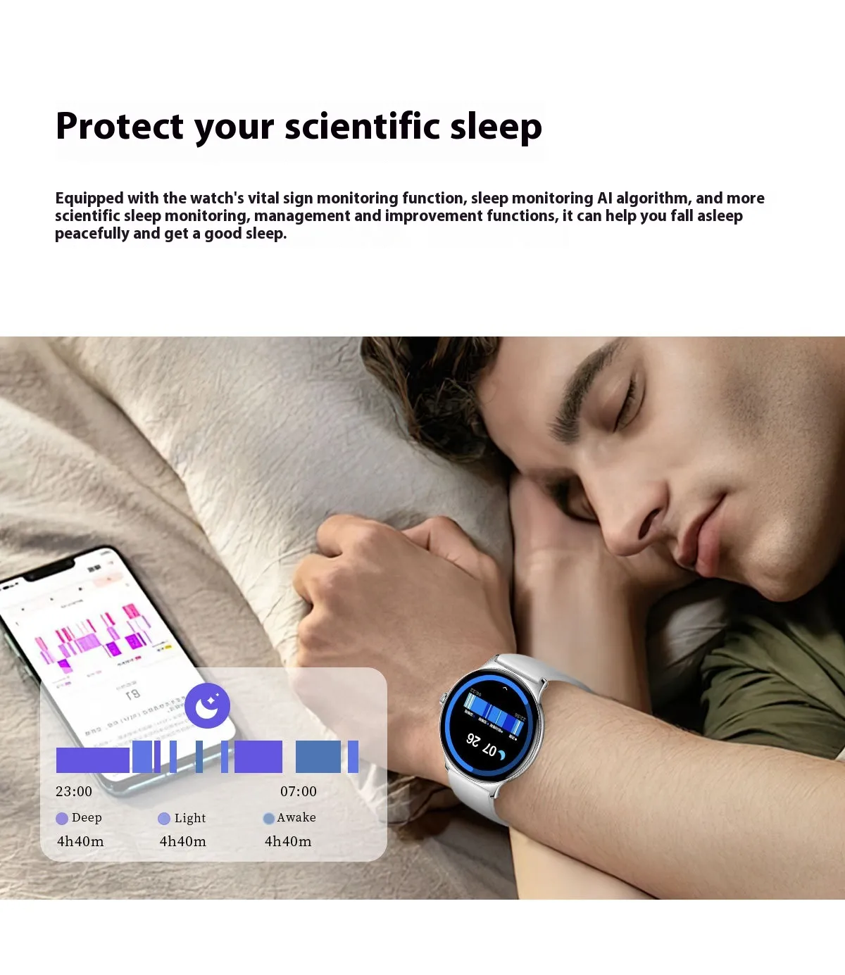 Sleep monitoring helps you track your sleep quality, providing valuable insights into your sleep patterns. Understanding your sleep stages (light, deep, REM) can help you adjust your routines to ensure better rest and recovery.