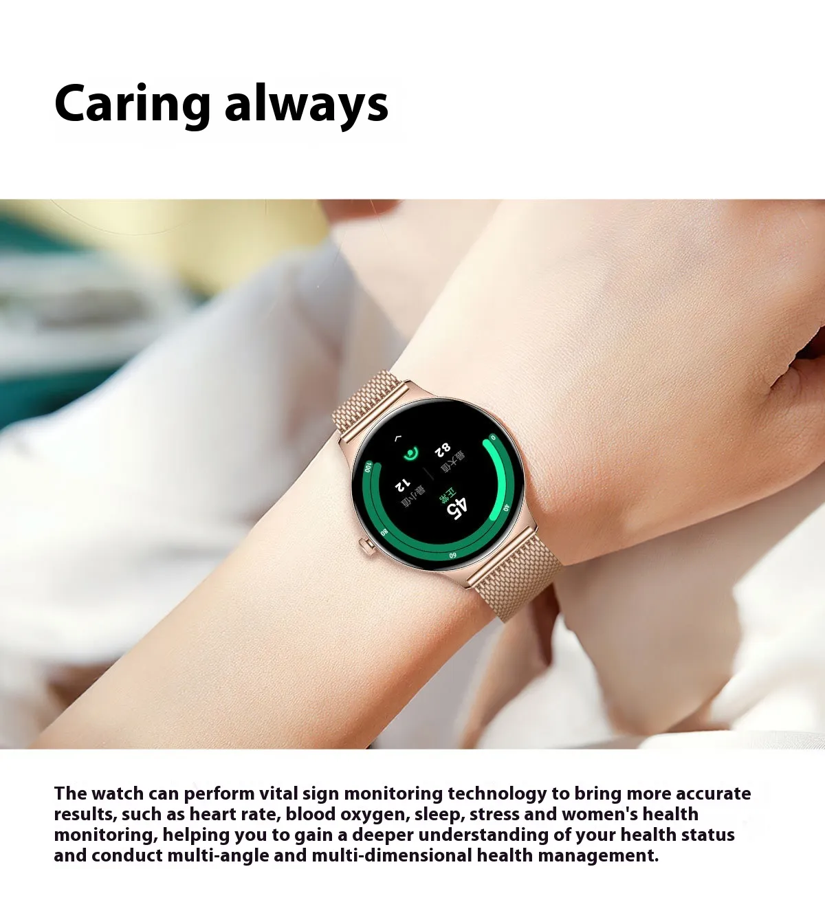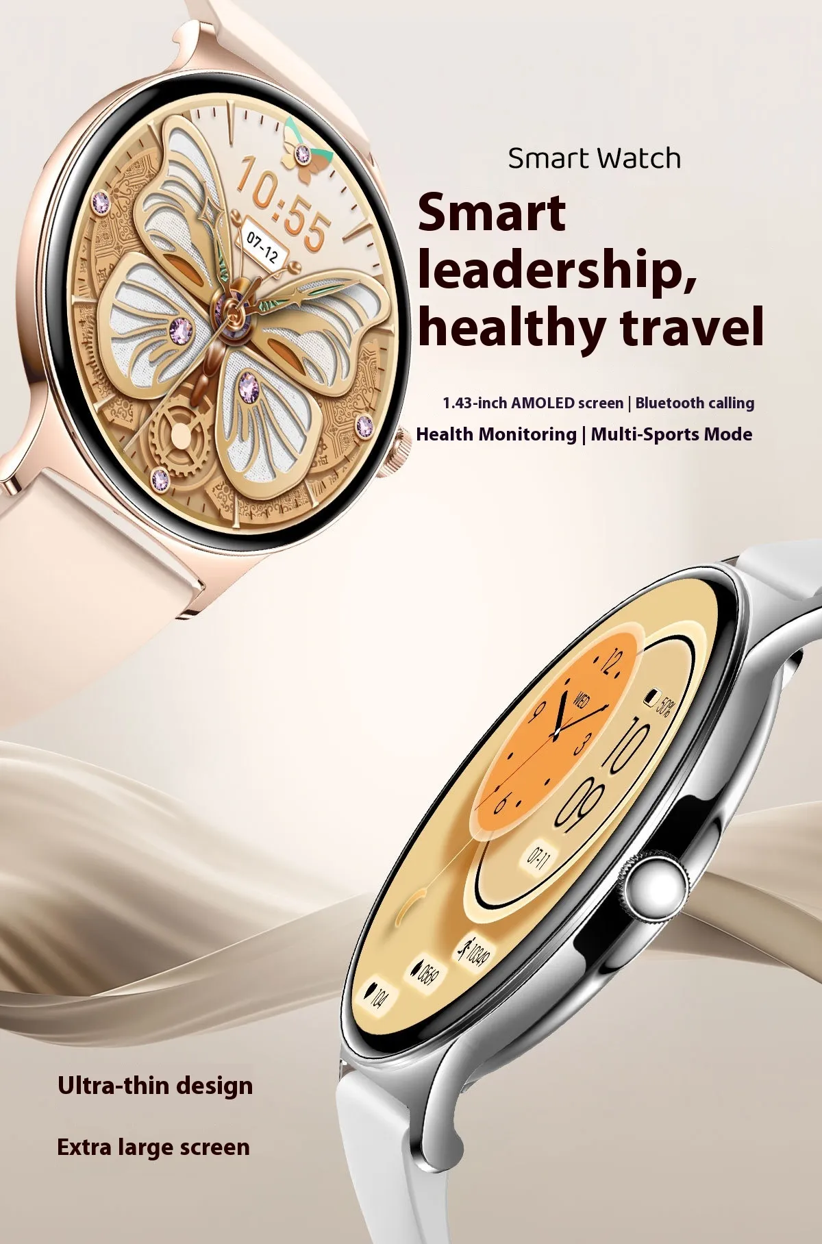 The smartwatch offers a sleek and modern design, with the added ability to customize the watch face to suit your personal style. Match your smartwatch with your mood or outfit, ensuring it complements your look every day.