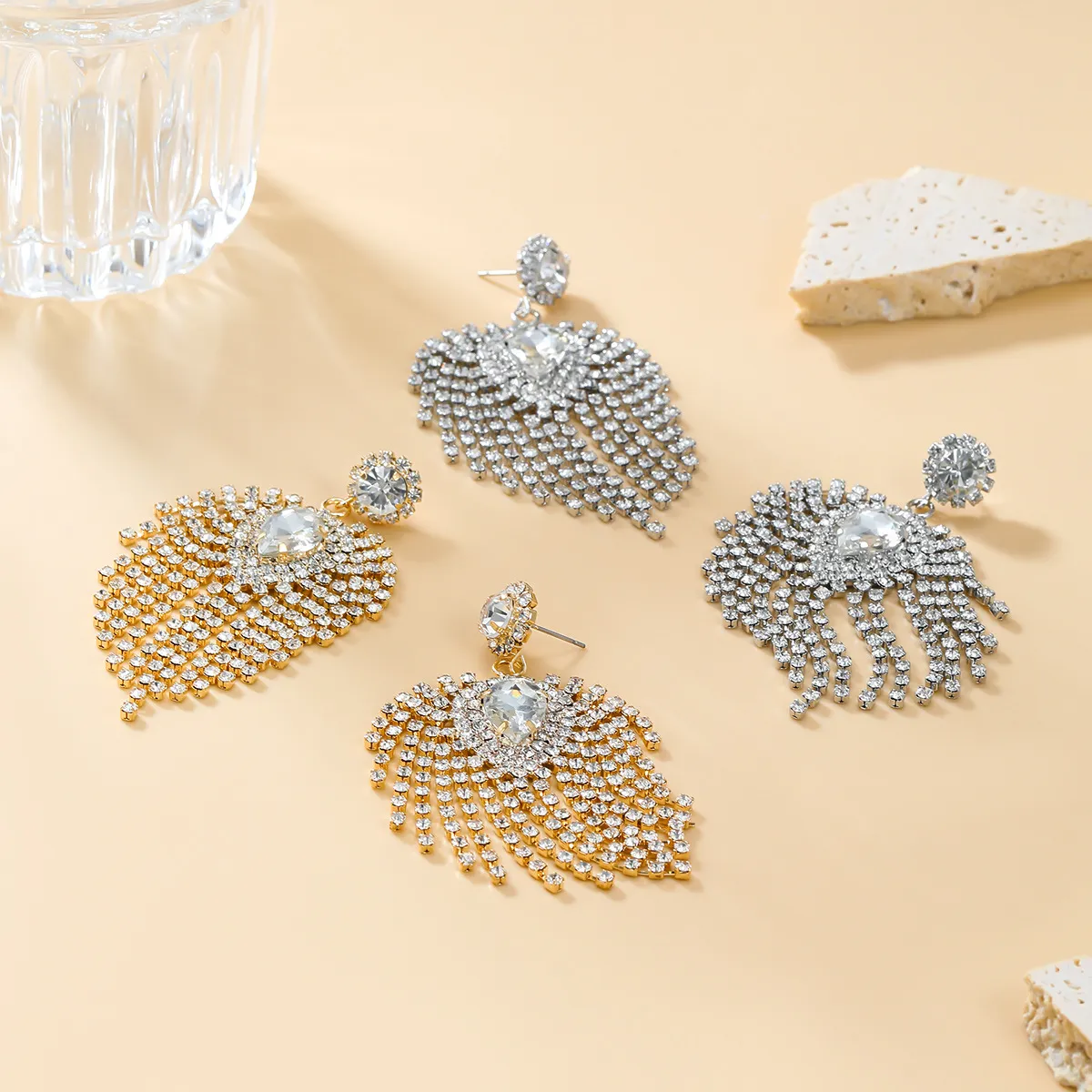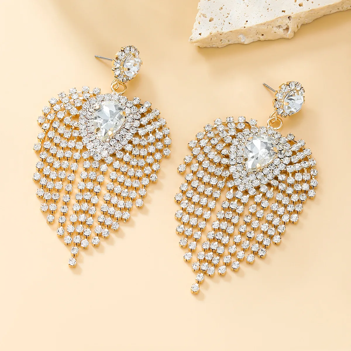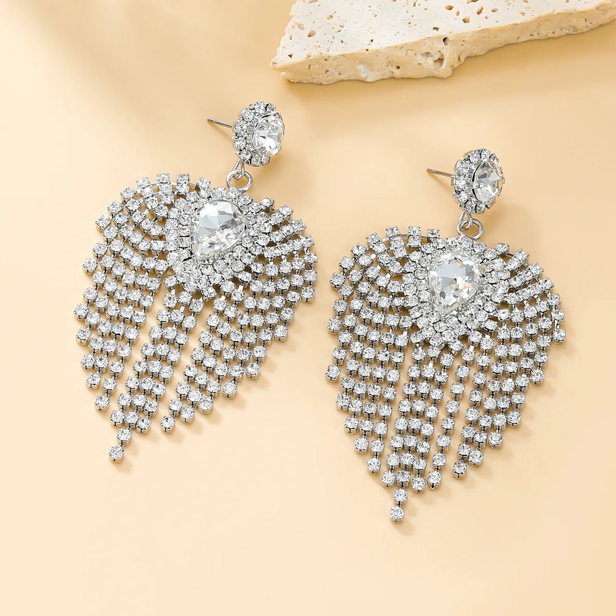 Full Rhinestone Tassel Earrings For Bride