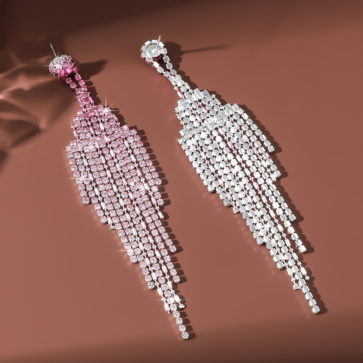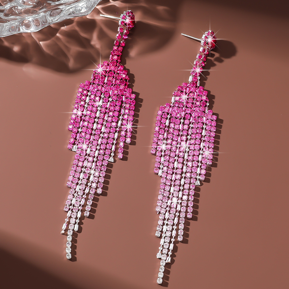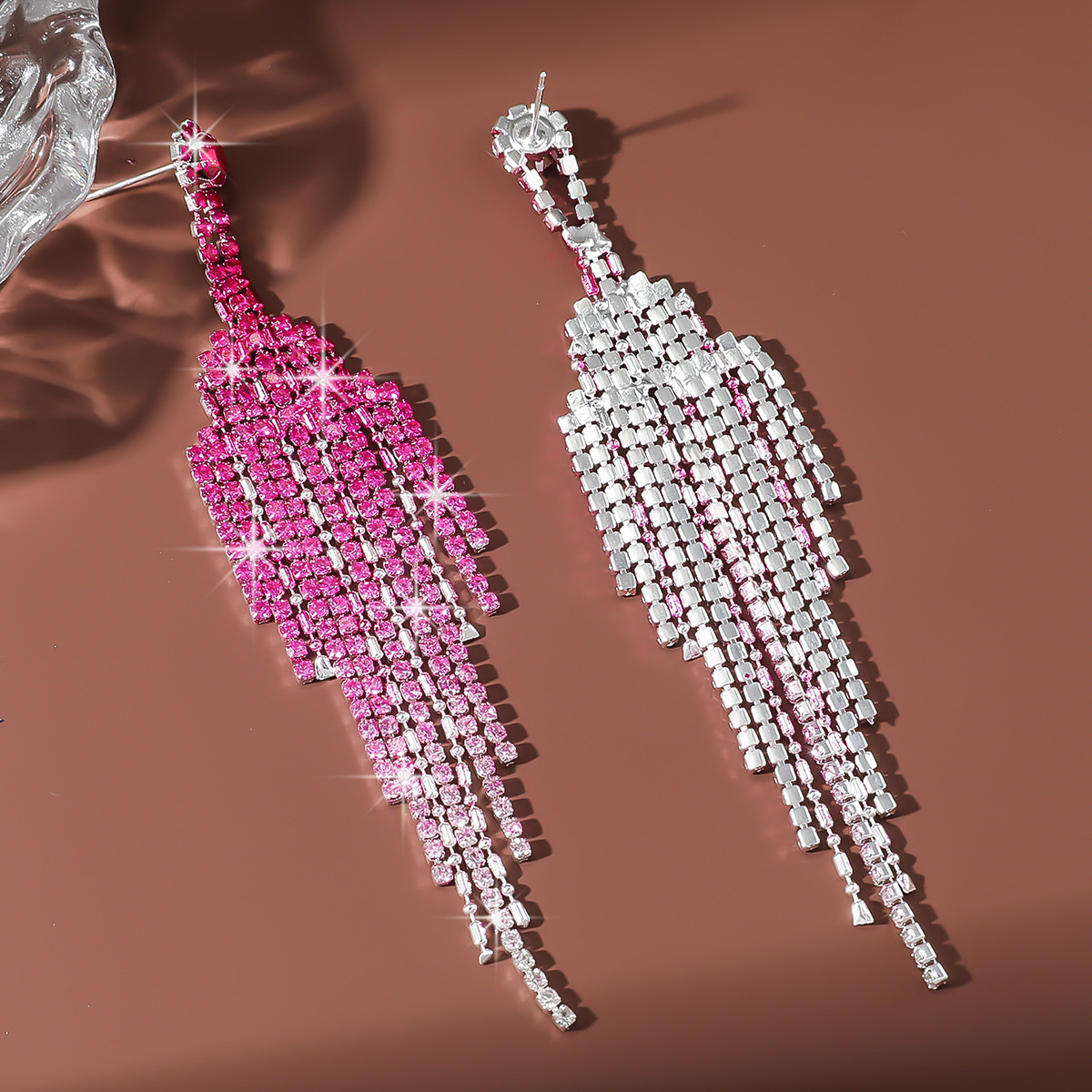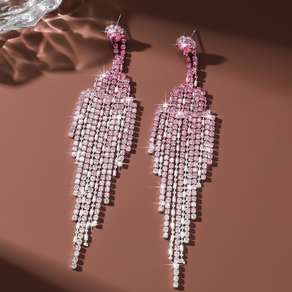 tassel design. The rhinestones are meticulously set to catch the light from every angle, creating a dazzling effect that enhances any